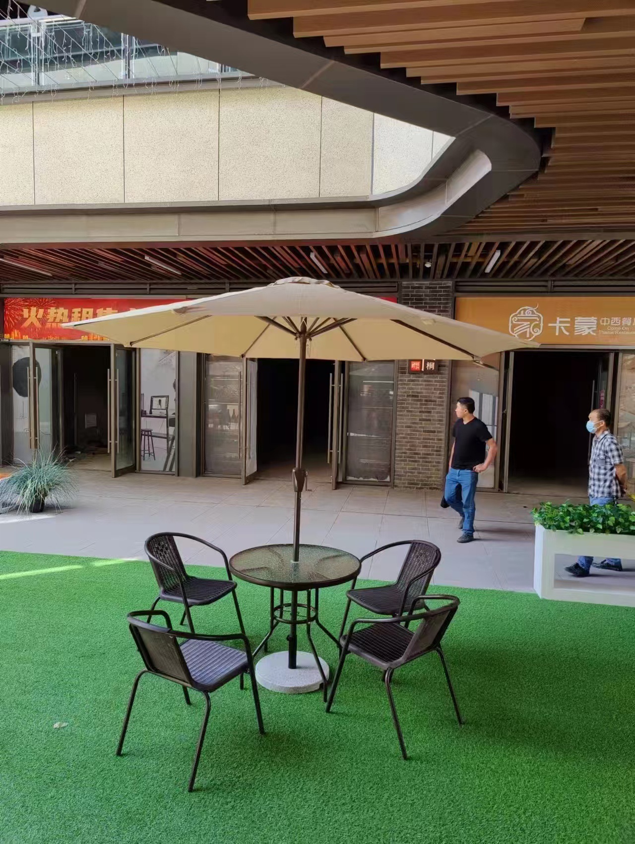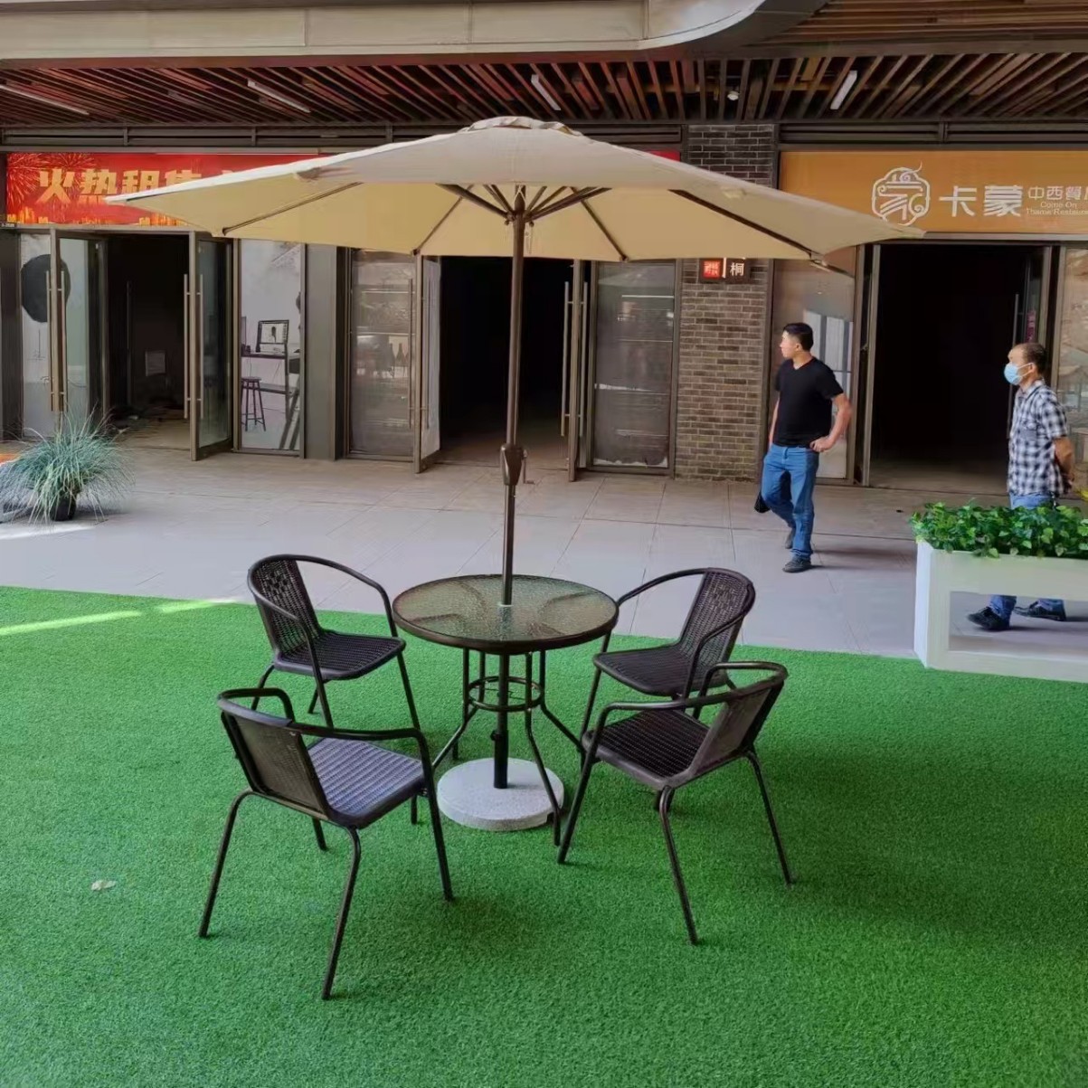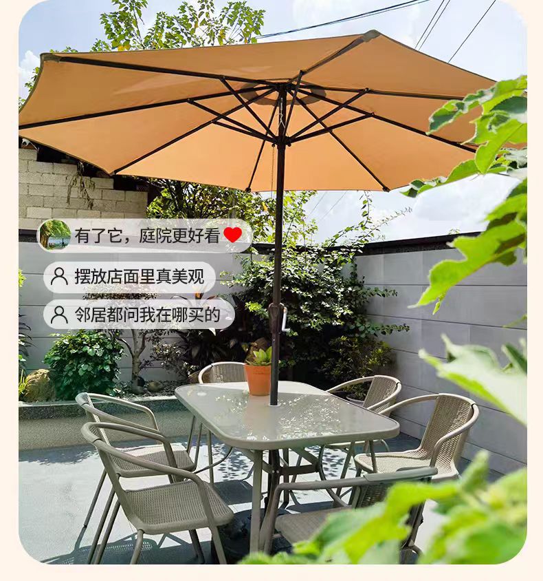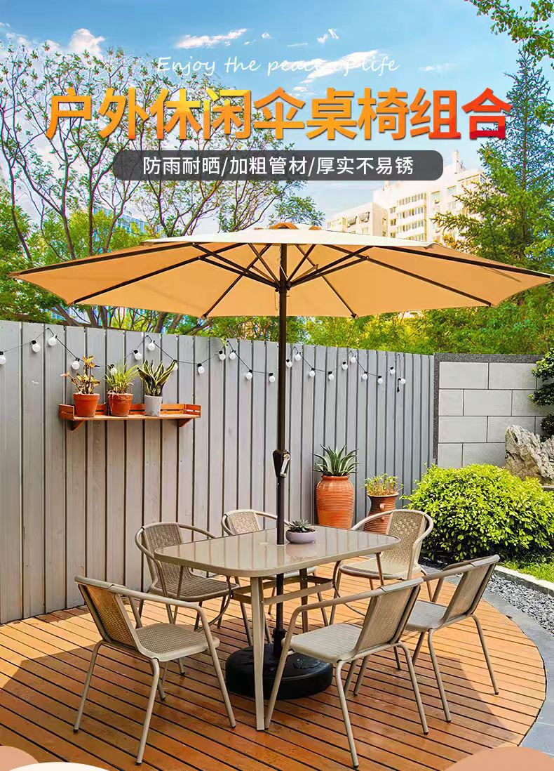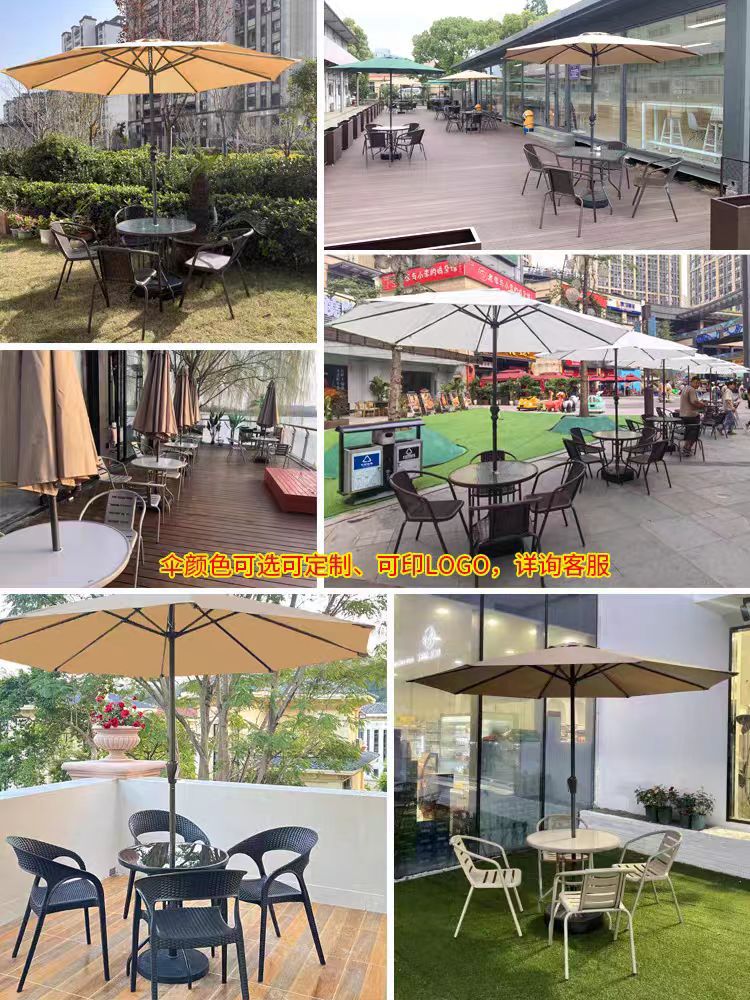 야외 테이블과 의자 우산 조합 안뜰 정원 야외 우유 차 가게 카페 야외 태양 양산스토어 가기