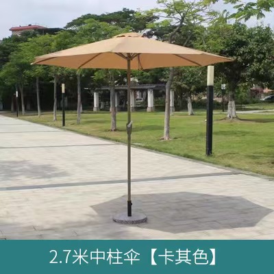 • 카키 2.7m 싱글 탑 센터 컬럼 우산 + 대리석 베이스