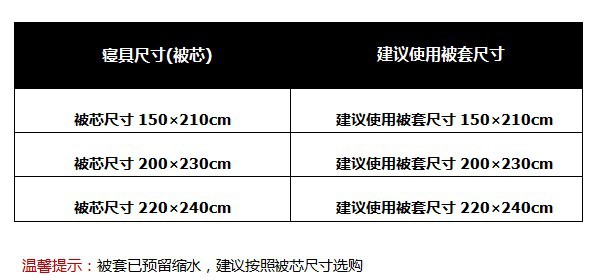 注:①购买前请先确认家里被子的尺寸、床的宽和长,购买