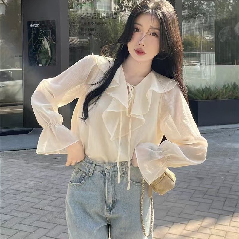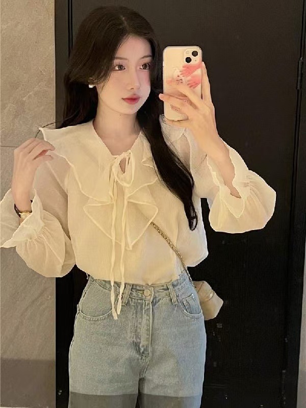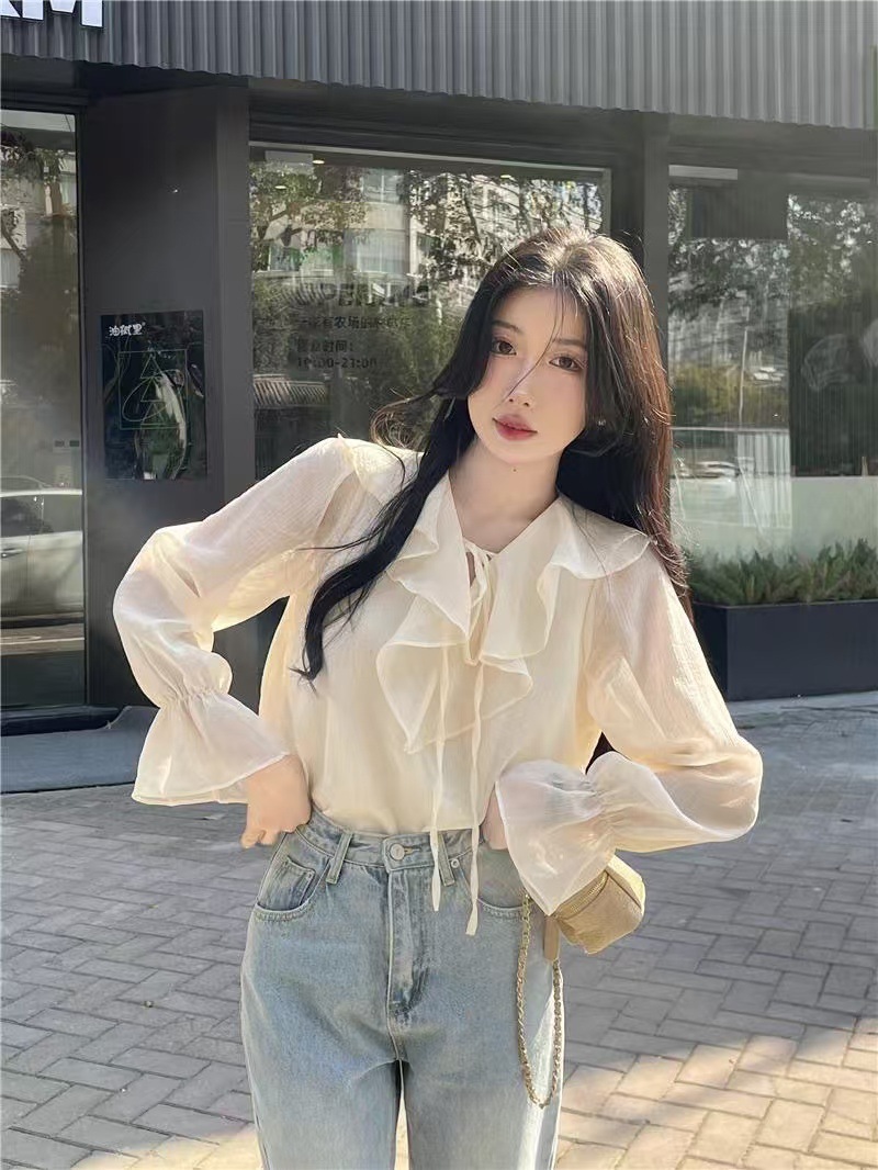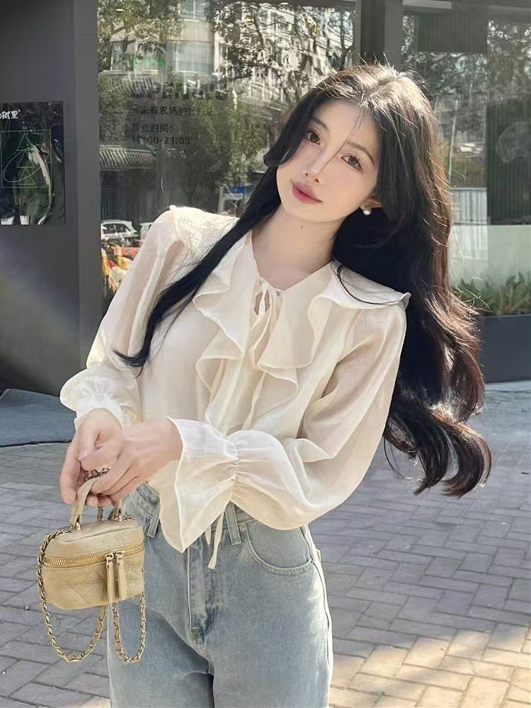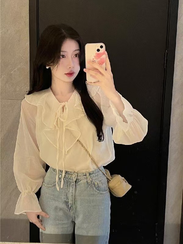 재고 2025 봄 쉬폰 셔츠 러플 테더 서양식 올 매치 탑 젠틀 스위트 스몰 셔츠스토어 가기
