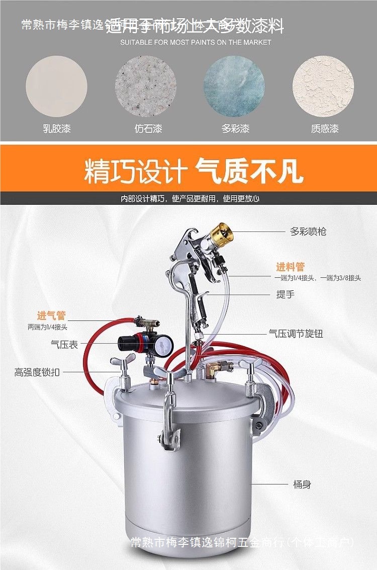 물 내 모래 2L 공압 페인트 라텍스 페인트 15 리터 코팅 기계 5 압력 배럴 탱크 10 돌 모양의 페인트 총 스트레이트 헤어