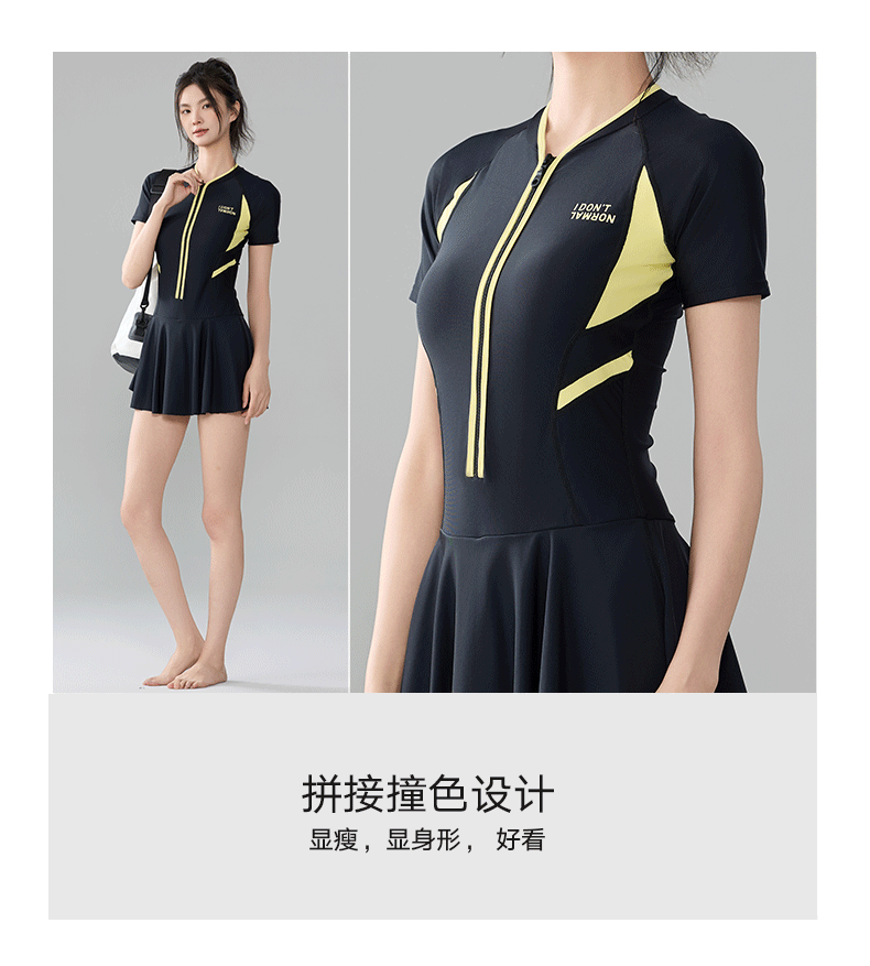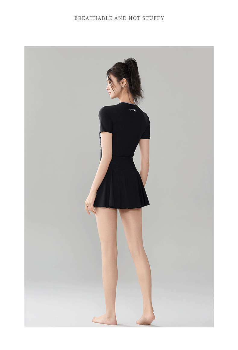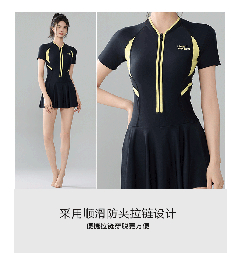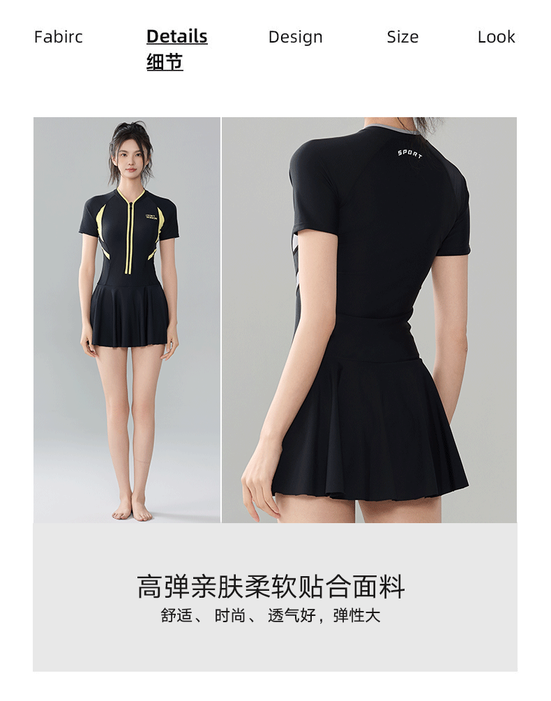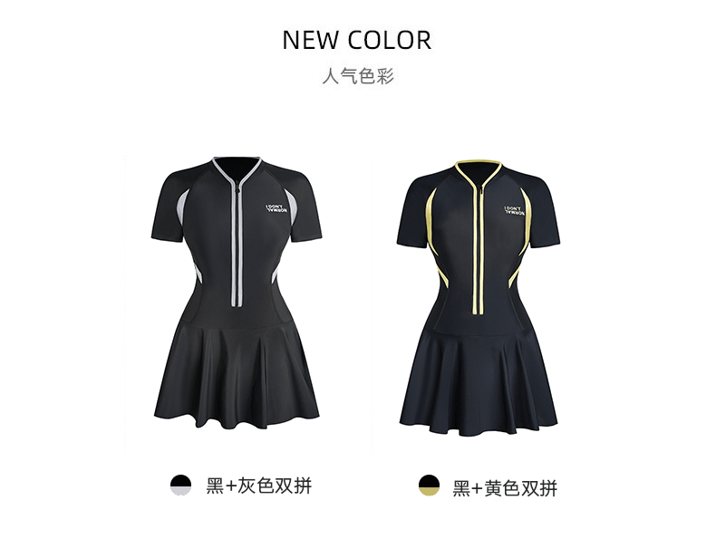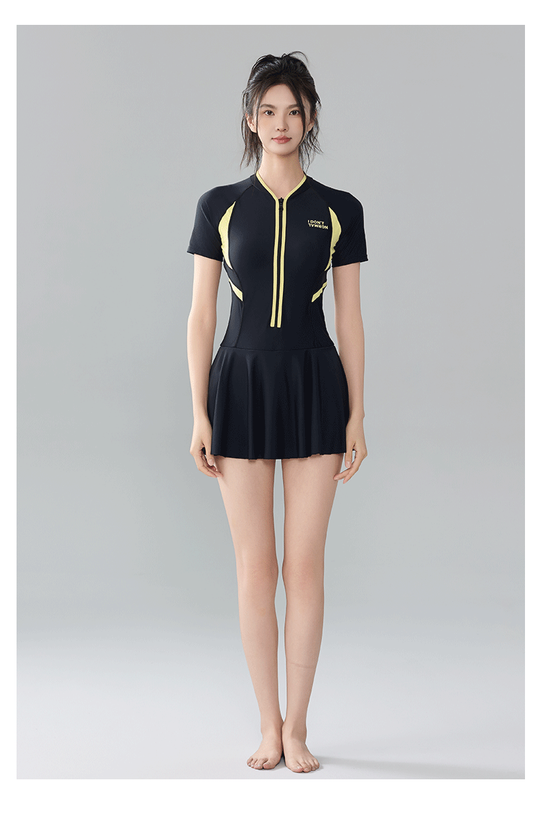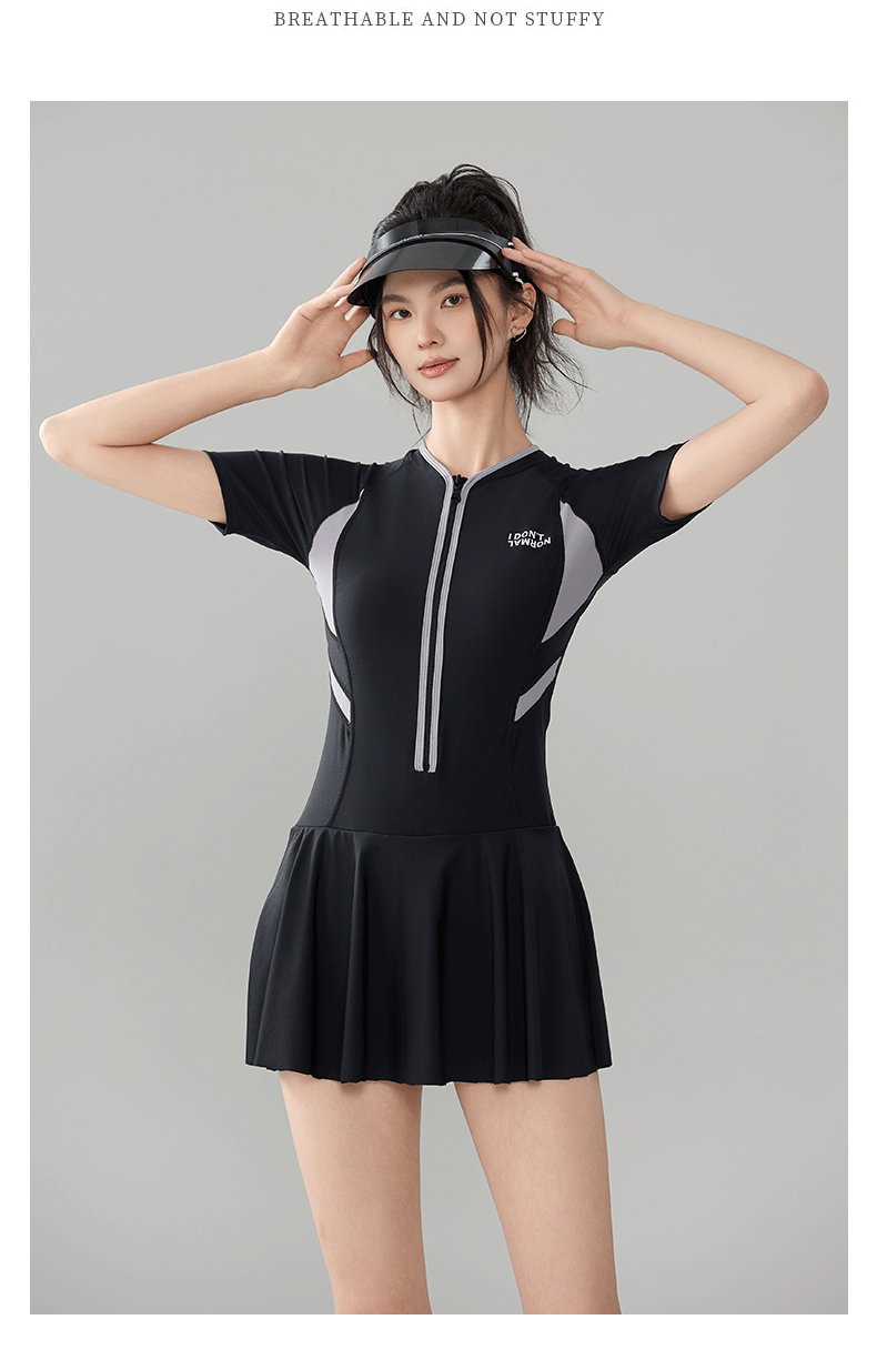 2025 새로운 스포츠 수영복 여성 보수 스커트 반팔 학생 원피스 벨리 커버 슬리밍 해변 온천 패션