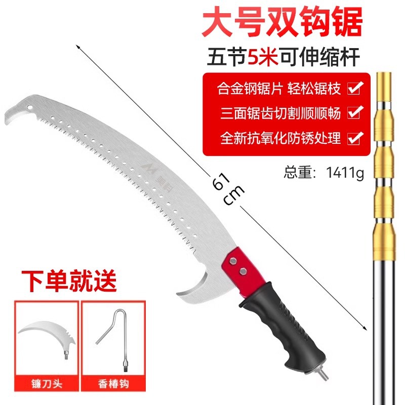 • 노란색 세트 강화 텔레스코픽 폴 5m + 더블 후크 톱(칼 + 후크 보내기)
