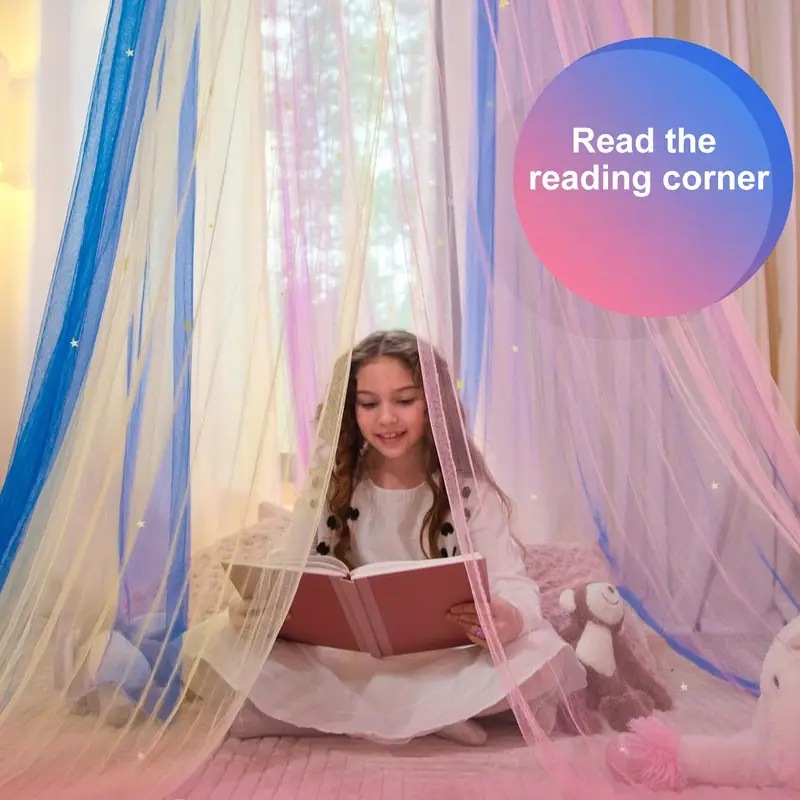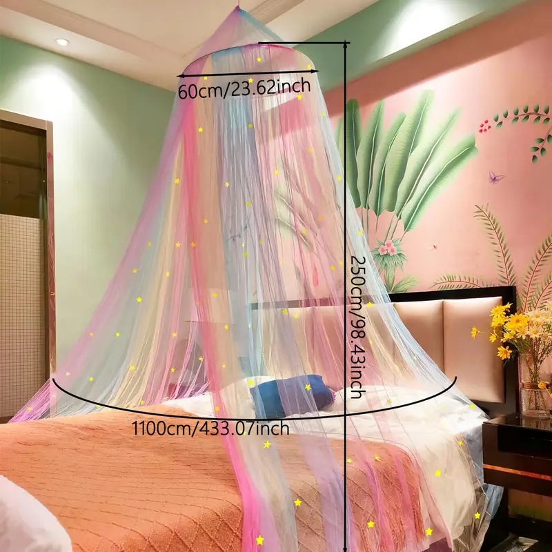 국경 간 수출 색상 꿈 공주 바람 별 돔 모기장 접이식 장식 그늘 커튼 침대 커튼 설치-무료스토어 가기
