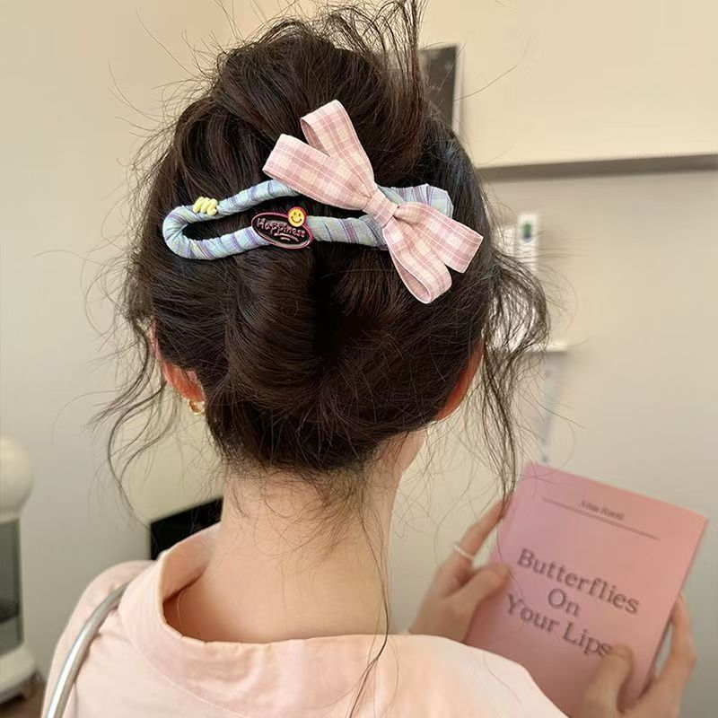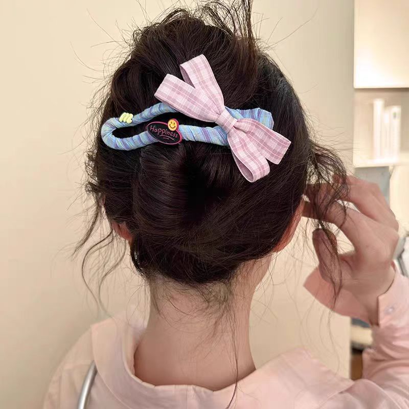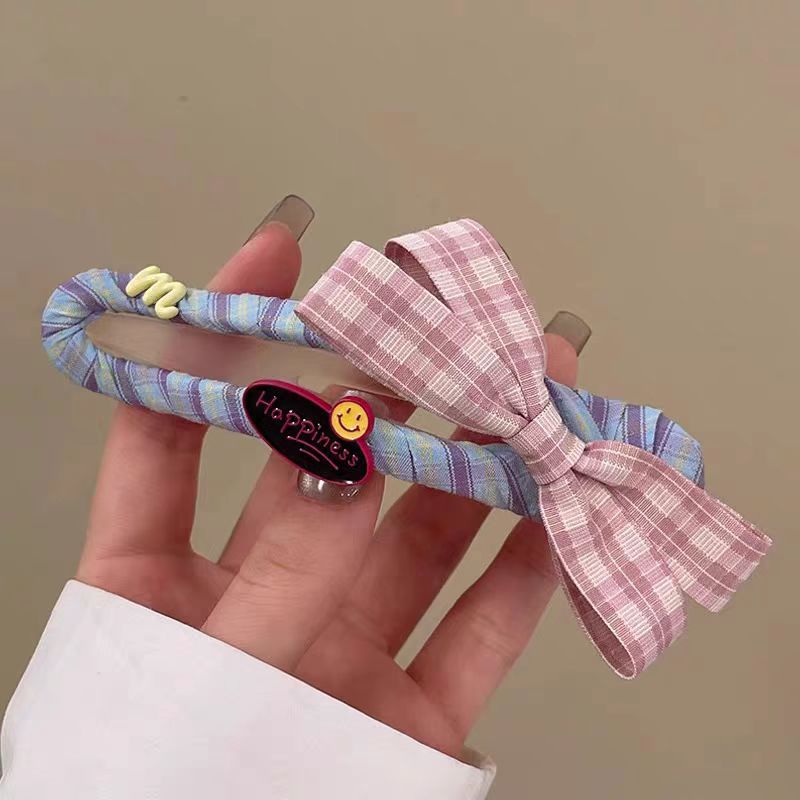 달콤한 스타일 체크 무늬 대조 컬러 활 머리띠 여성용 Ins 라이트 럭셔리 머리 뒤 머리 머리 머리 머리 머리옷 틈새 올 매치 헤어 액세서리