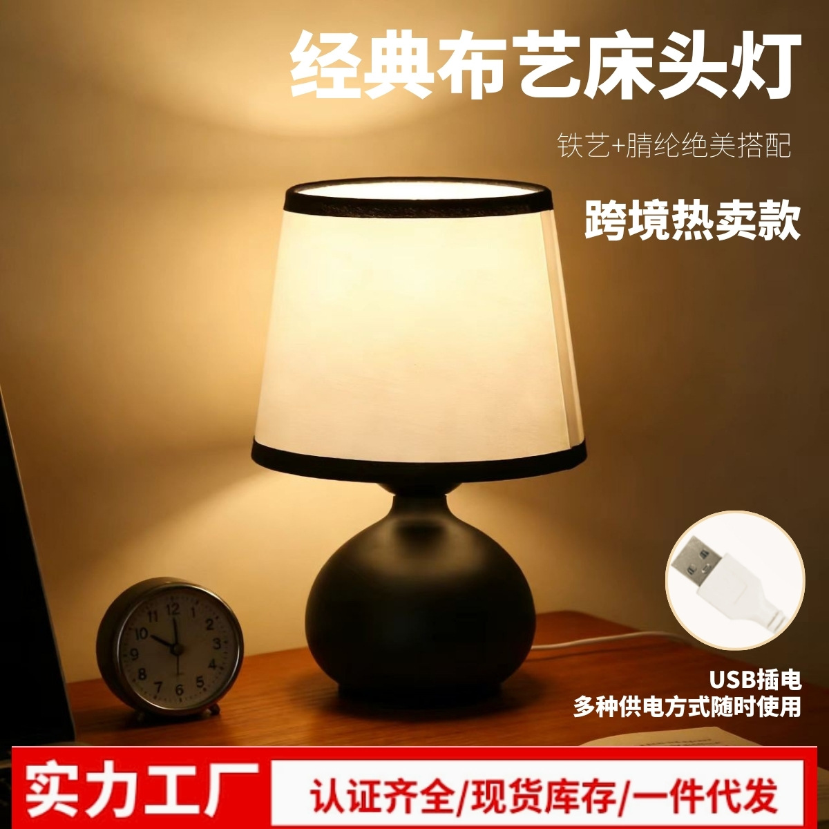 제조업체 핫세일 북유럽 클래식 레트로 침실 조광 가능한 패브릭 테이블 램프 창의적인 야간등