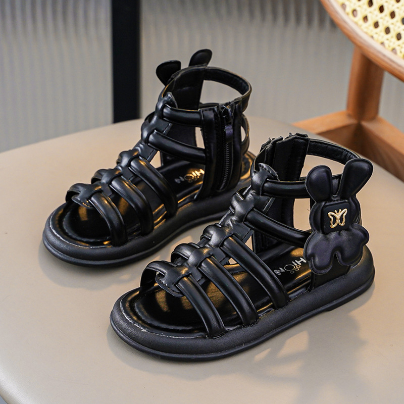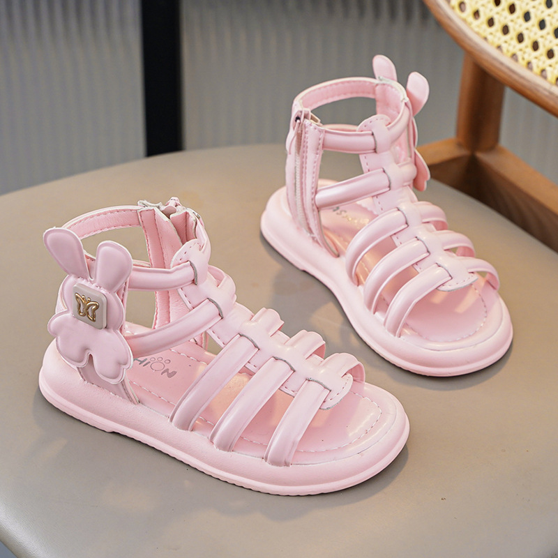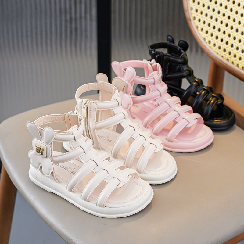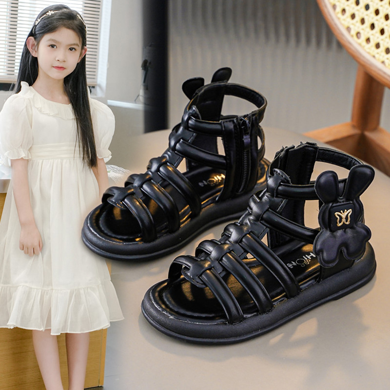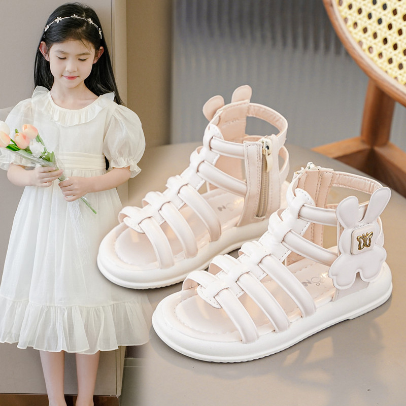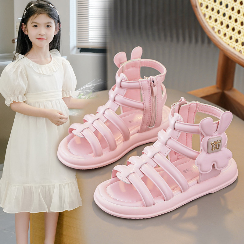 어린이 샌들 여자 신발 여름 2025 새로운 스타일 중대형 어린이 소프트 솔 오픈 토 공주 신발 어린 소녀의 로마 신발