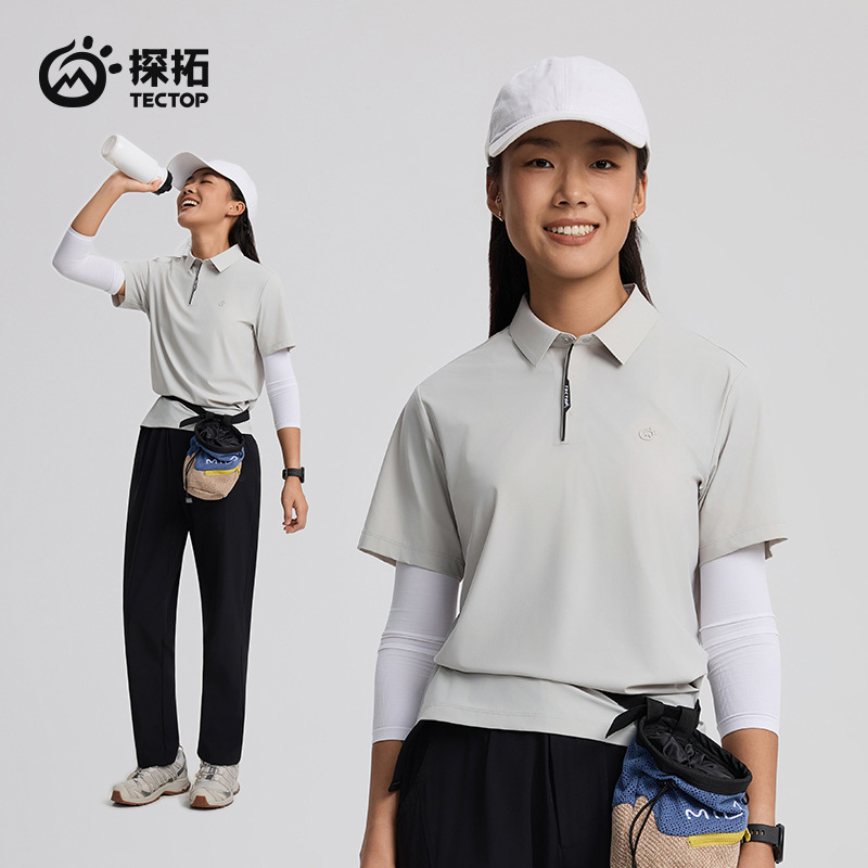 2025 테크톱/탄투오 야외 스포츠 빠른 건조 반팔 티셔츠 폴로 셔츠 남성과 여성 여름 선 스크린 아이스 실크 시원한 느낌