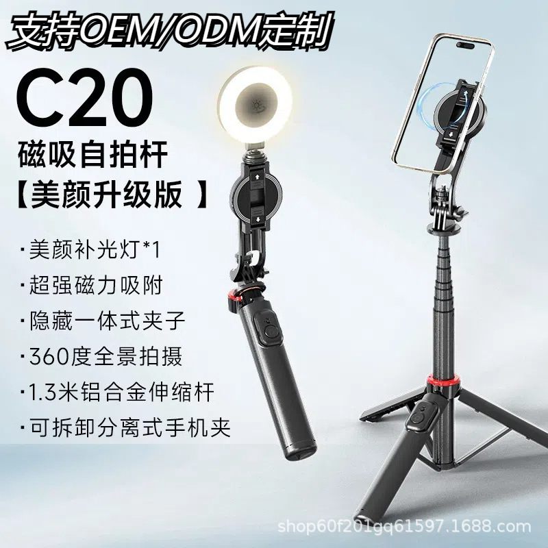• [C20+ 뷰티 필 라이트] 1.3m 알루미늄 합금 막대 자석 셀카봉 삼각대