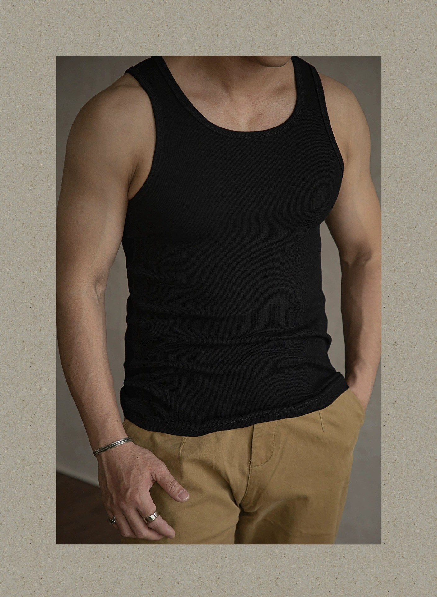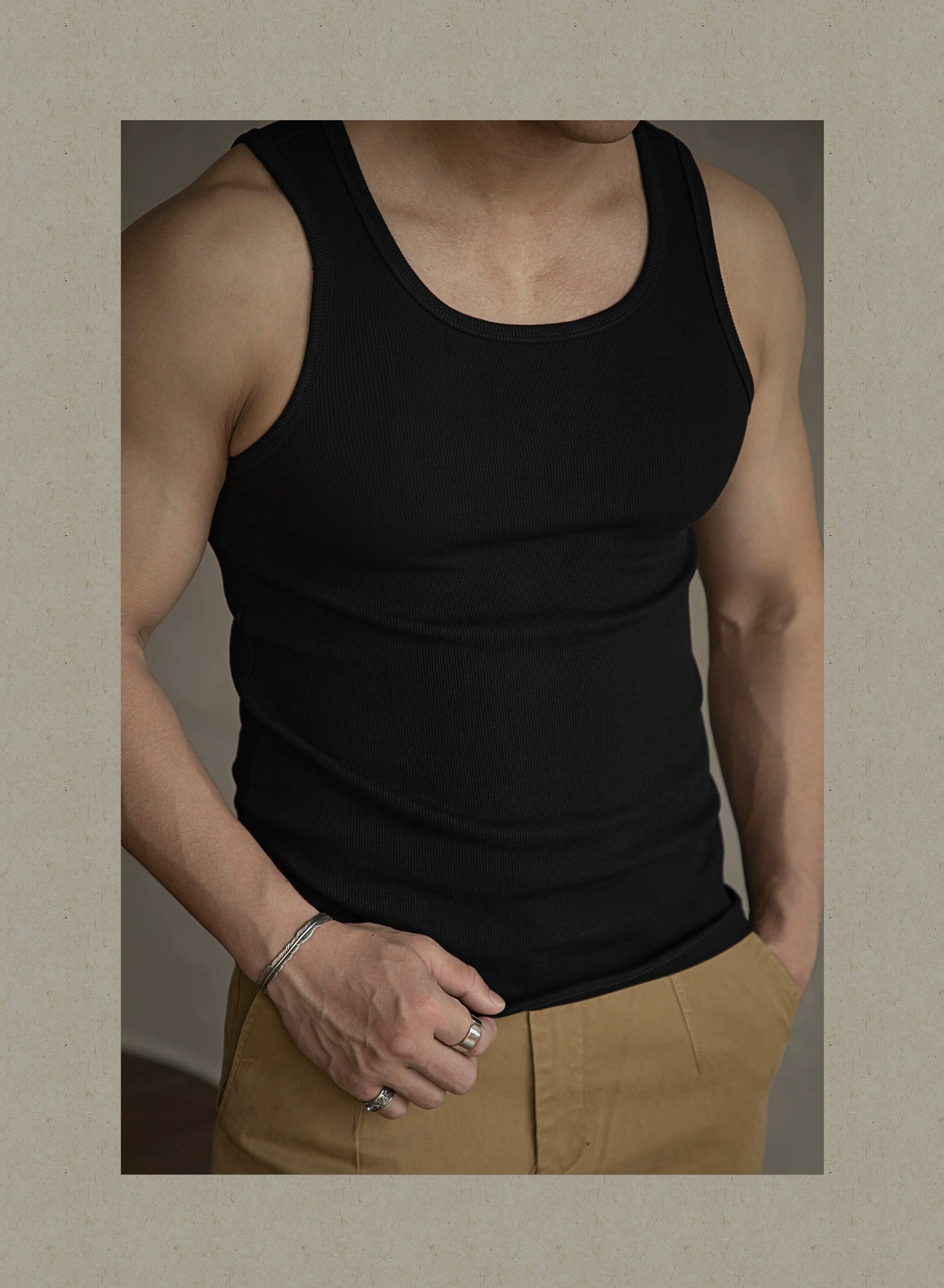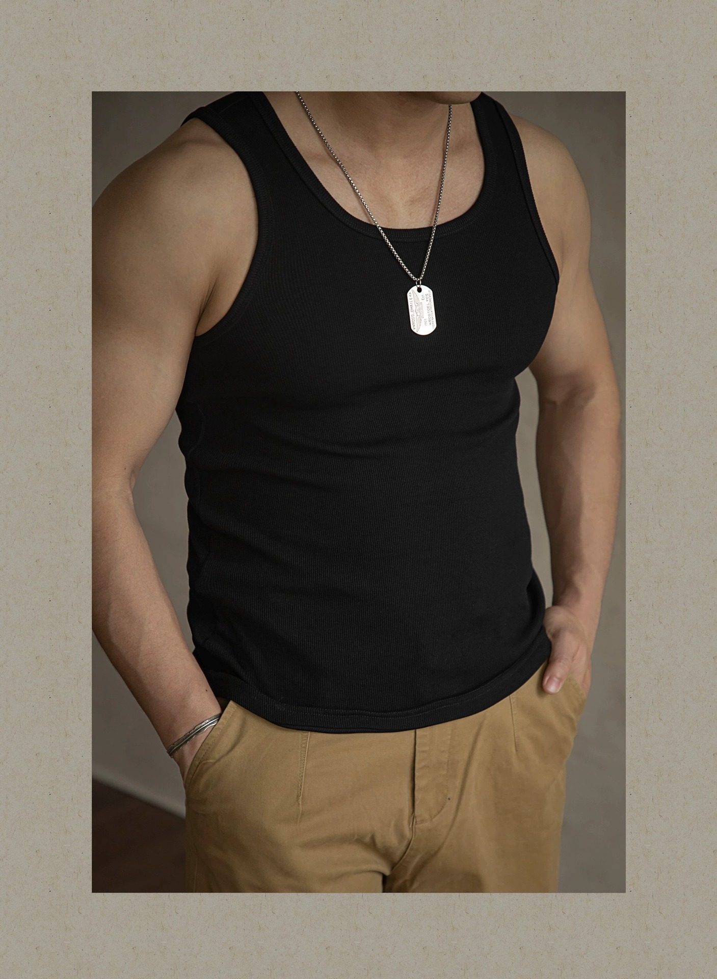 아메리칸 스타일 레트로 스트레치 면화 슬림 조끼 민소매 티셔츠베이스 셔츠 스웨트 토프 가이 피트니스 남성 여름 흡수스토어 가기