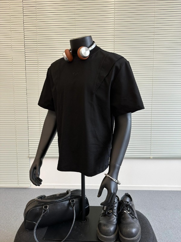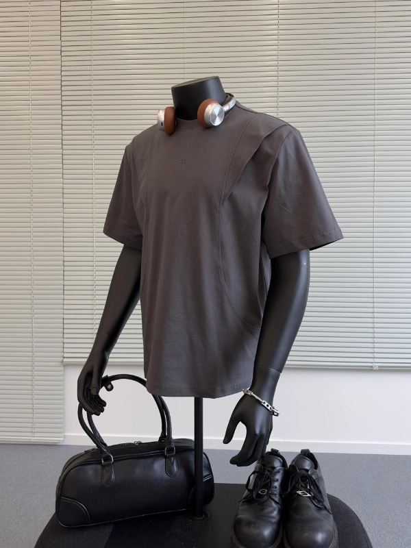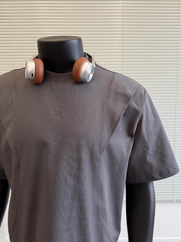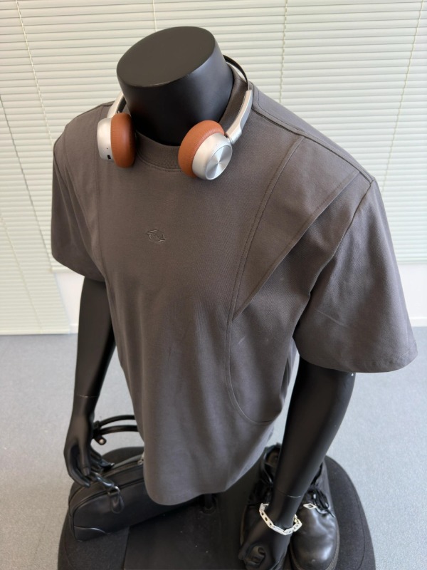 국경 간 멜란지 그레이 어깨 반팔 남성 미국식 레트로 헤비 박스 쇼트 와이드 티셔츠 패션 브랜드 해체 반소매 캐주얼스토어 가기