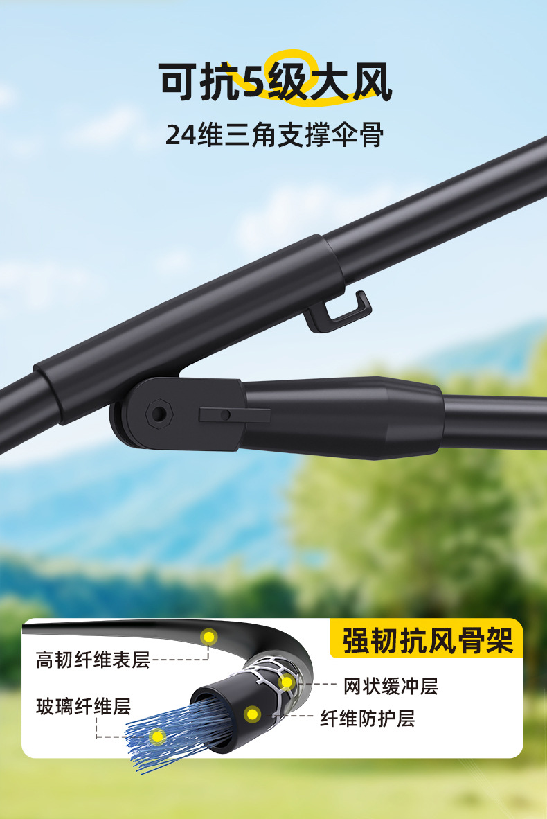 • 신형 목발우산 [넓어지고 커진 날개 + 원버튼 시작 + 이중 360도 조절] 시안 2.4m