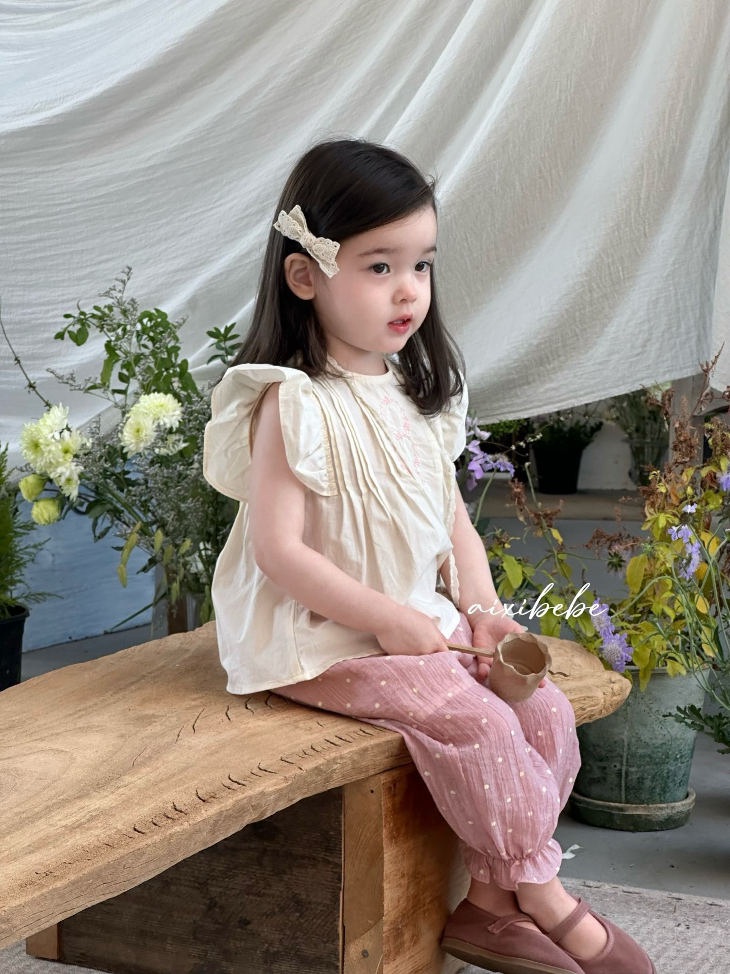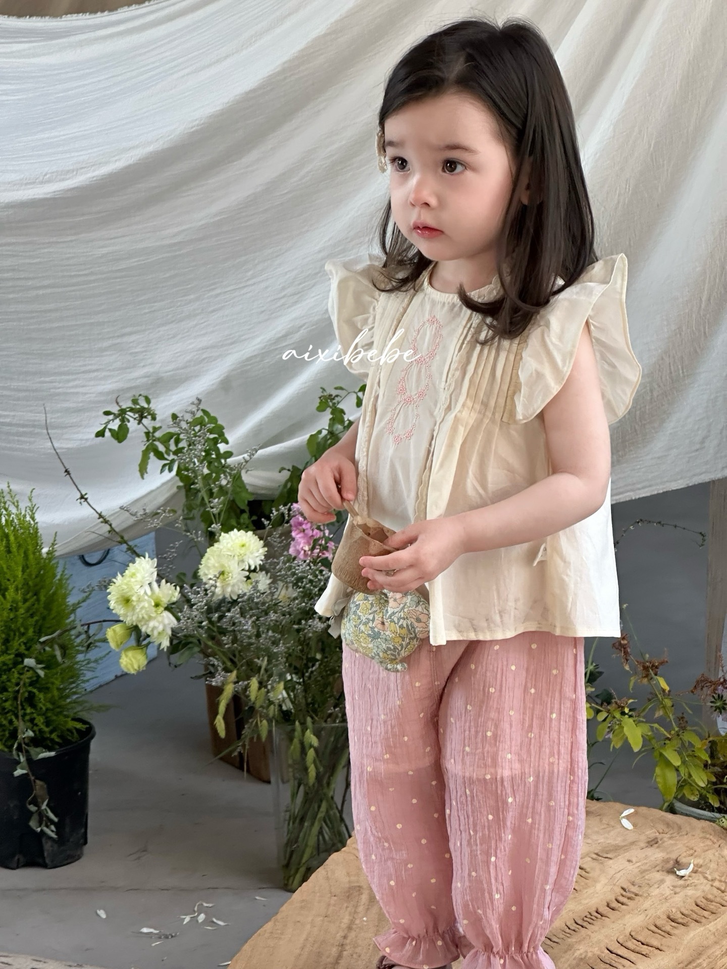 Aixi 여름 새로운 소녀 유아 소녀 자수 인형 셔츠 최고 폴로 점 바지 1533