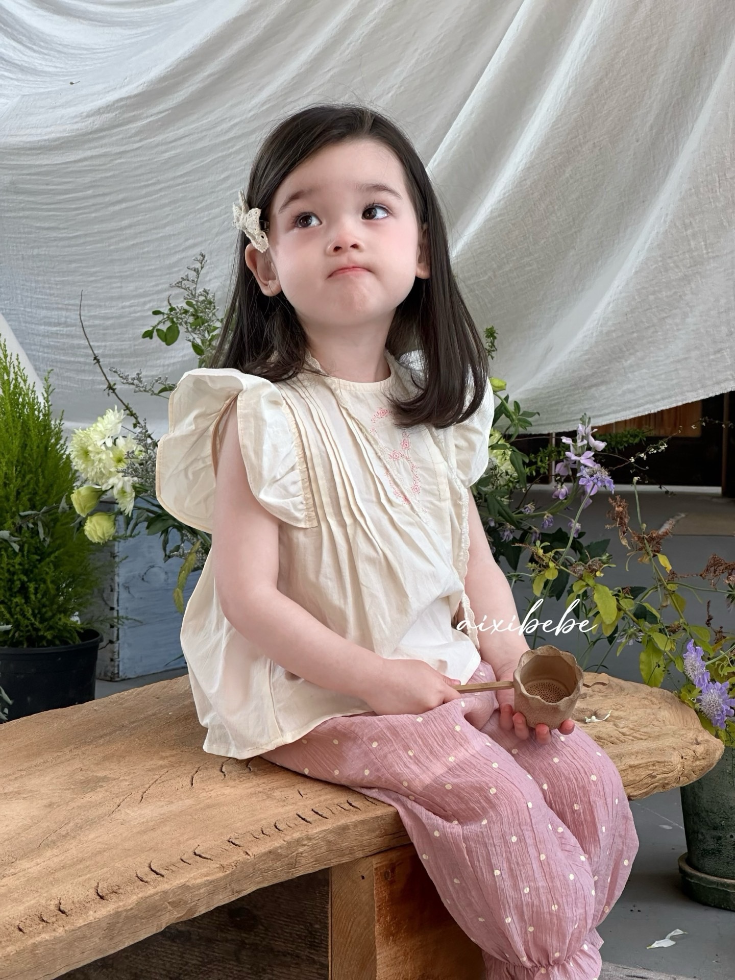 Aixi 여름 새로운 소녀 유아 소녀 자수 인형 셔츠 최고 폴로 점 바지 1533스토어 가기