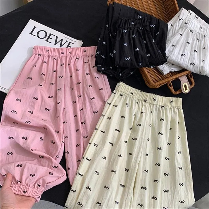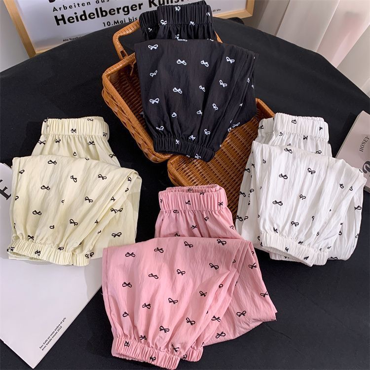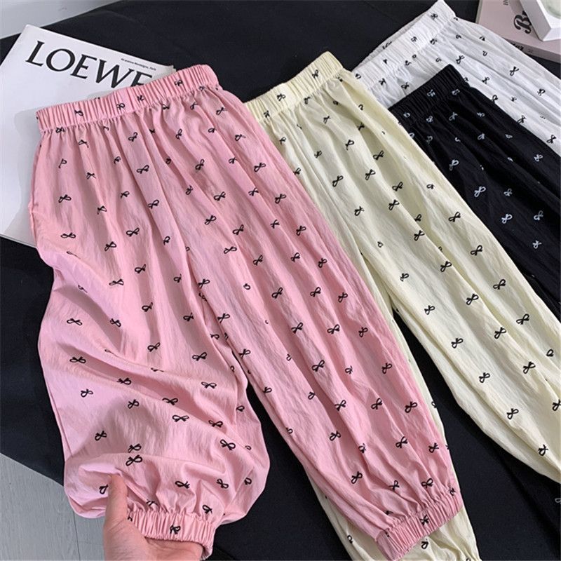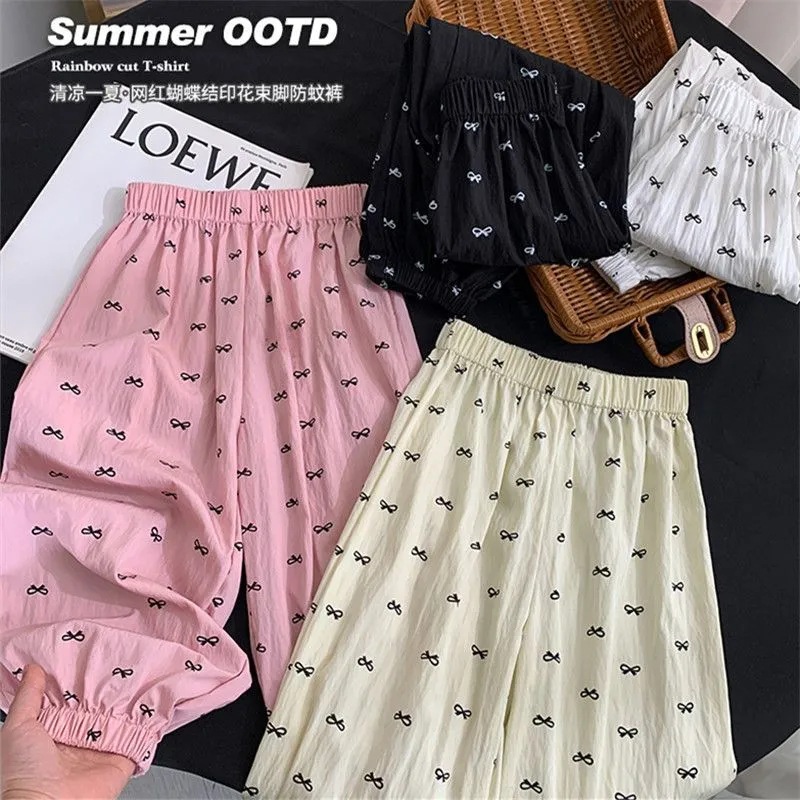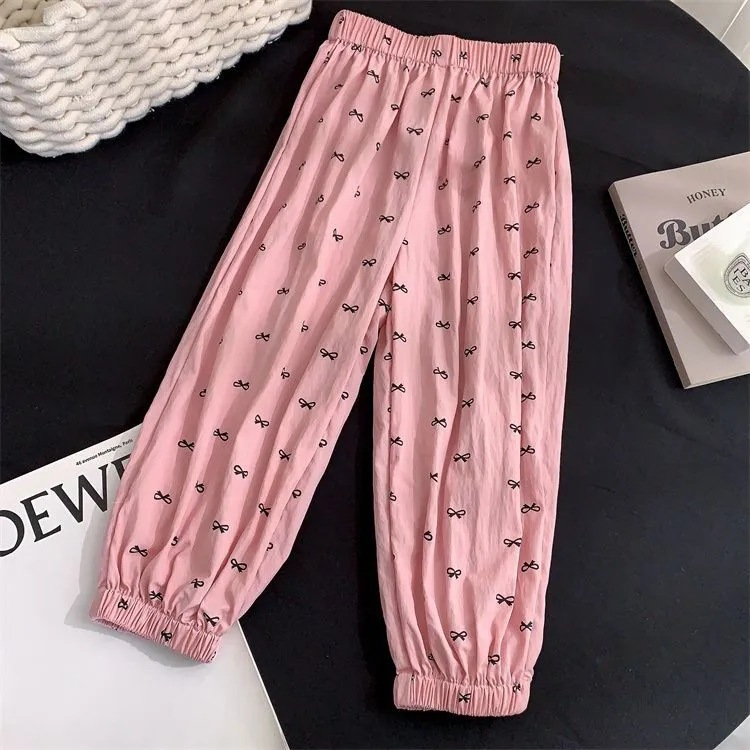 소녀의 모기 방지 바지 여름 2024 새로운 서양식 어린이 느슨한 발목 바지 어린 소녀의 캐주얼 바지 여름 얇은스토어 가기