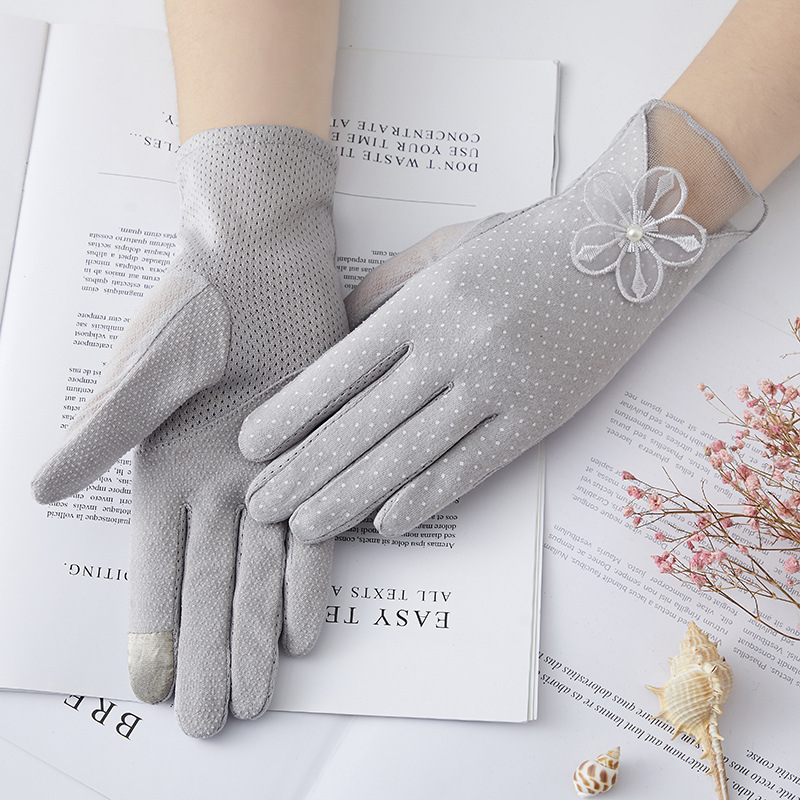 면 선 스크린 장갑 여성의 여름 레이스 야외 여행 통기성 터치 스크린 얇은 장갑 운전 미끄럼 방지 승마 장갑