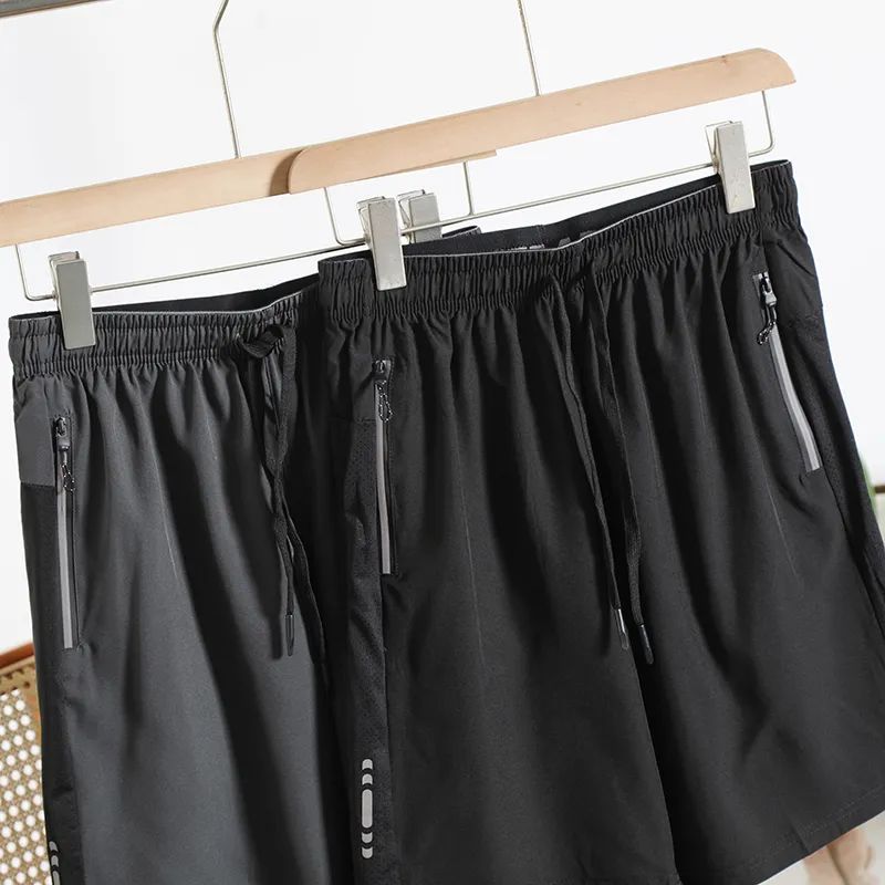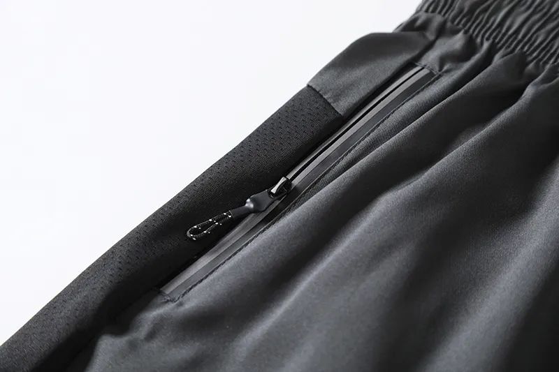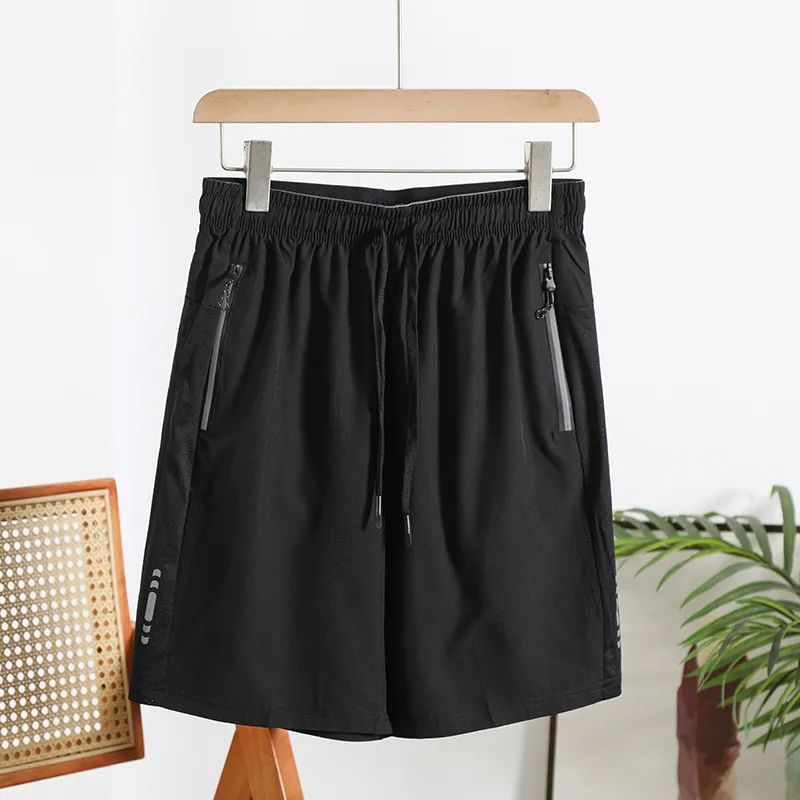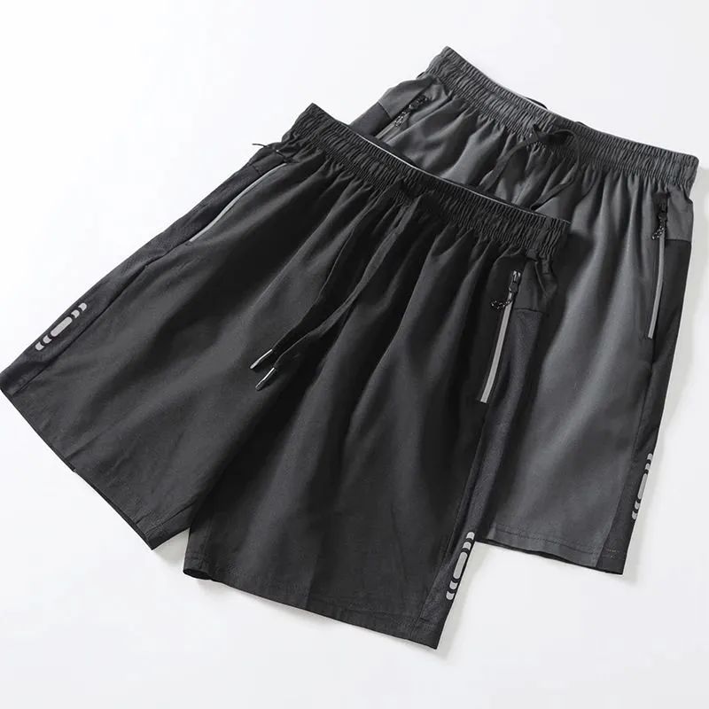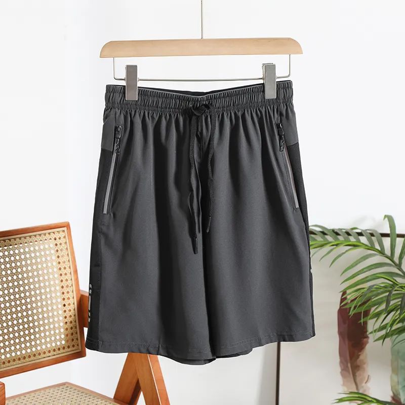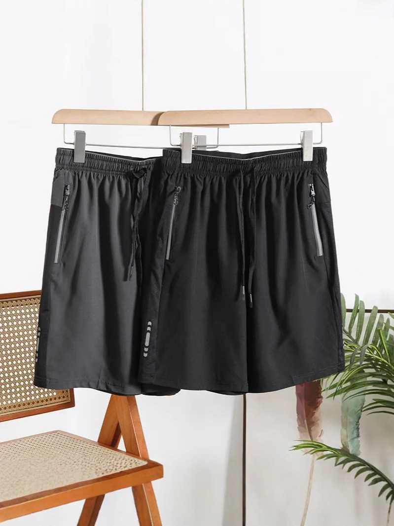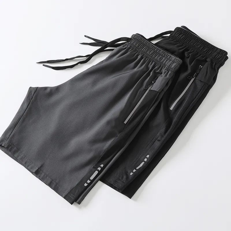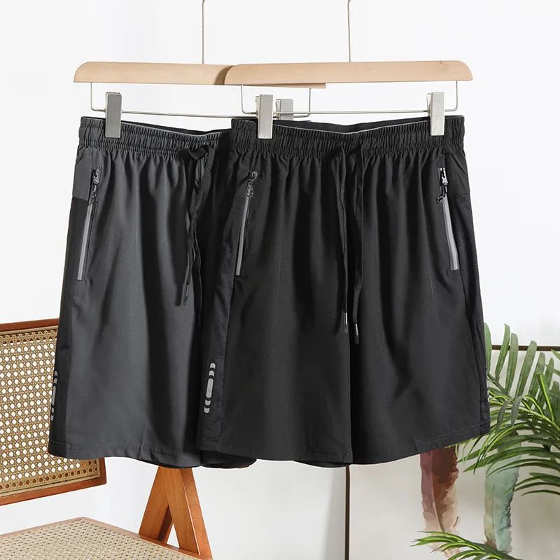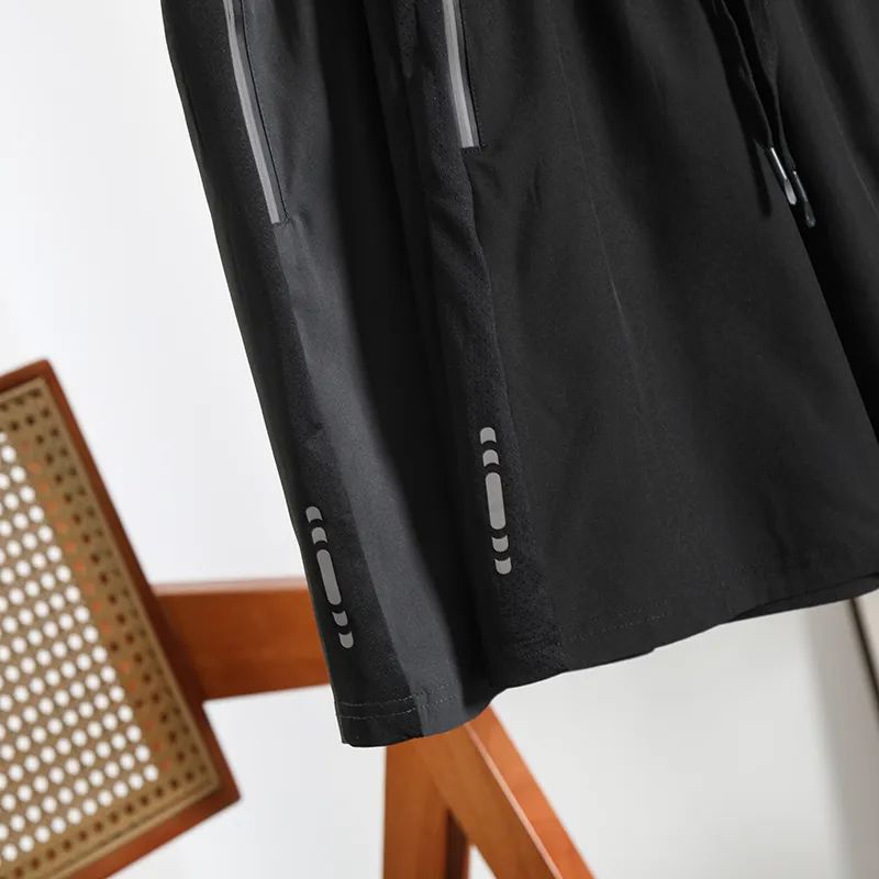 여름 새로운 남성의 단색 빠른 건조 통기성 편안한 모든 경기 탄성 반사 포켓 지퍼 스트레이트 캐주얼 반바지