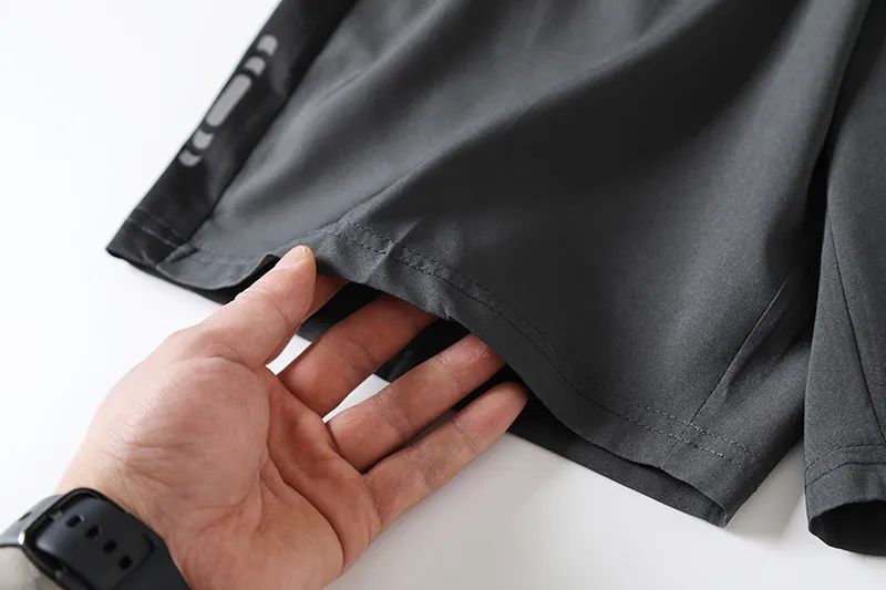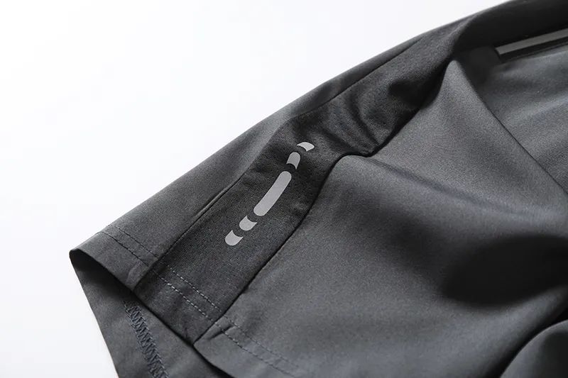 여름 새로운 남성의 단색 빠른 건조 통기성 편안한 모든 경기 탄성 반사 포켓 지퍼 스트레이트 캐주얼 반바지스토어 가기