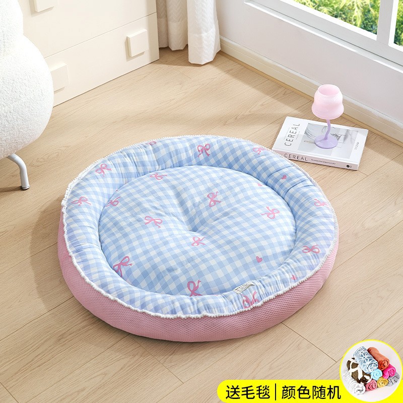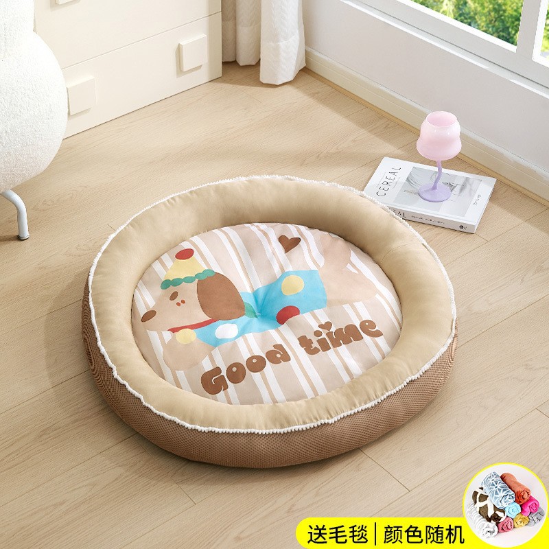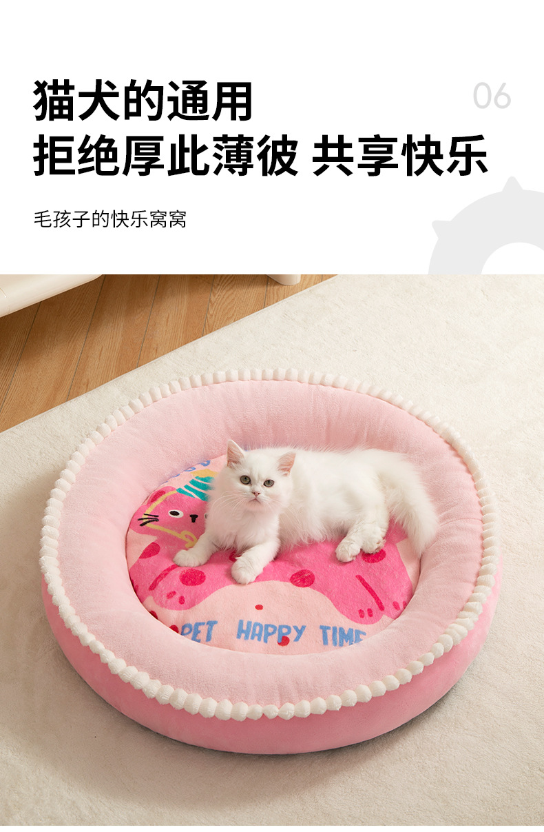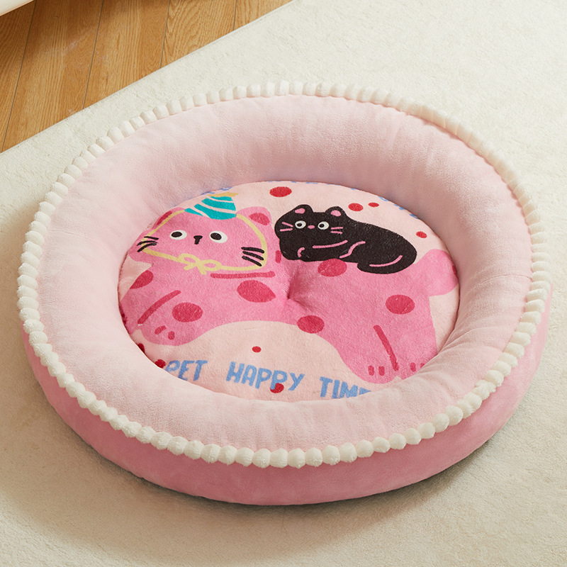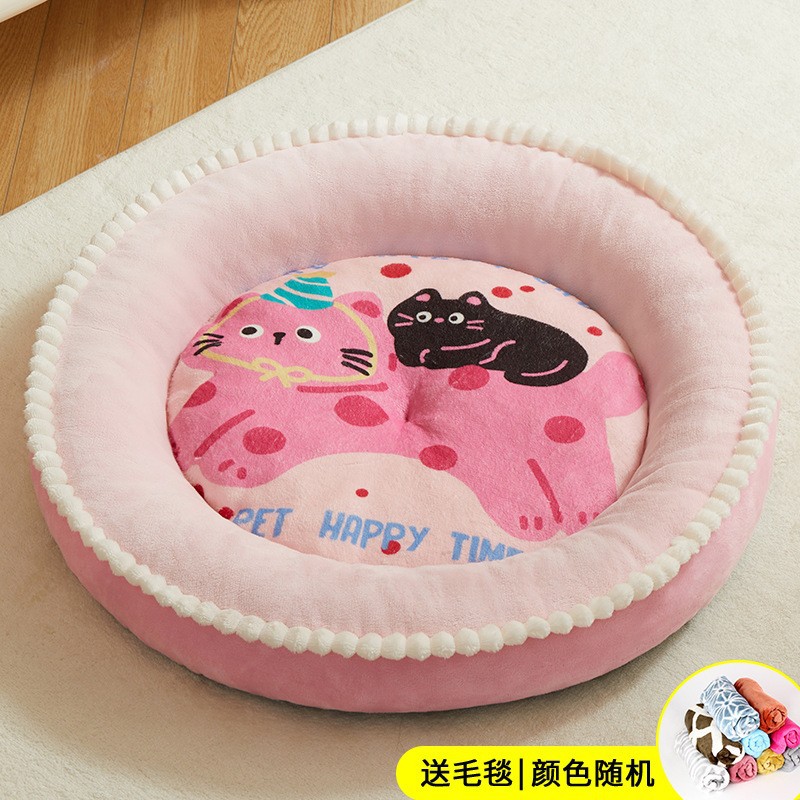 Kennel Four Seasons 유니버설 두꺼운 따뜻한 매트 미디어와 작은 개 Corgi Chai Dog 라운드 만화 개 침대 고양이 둥지 매트