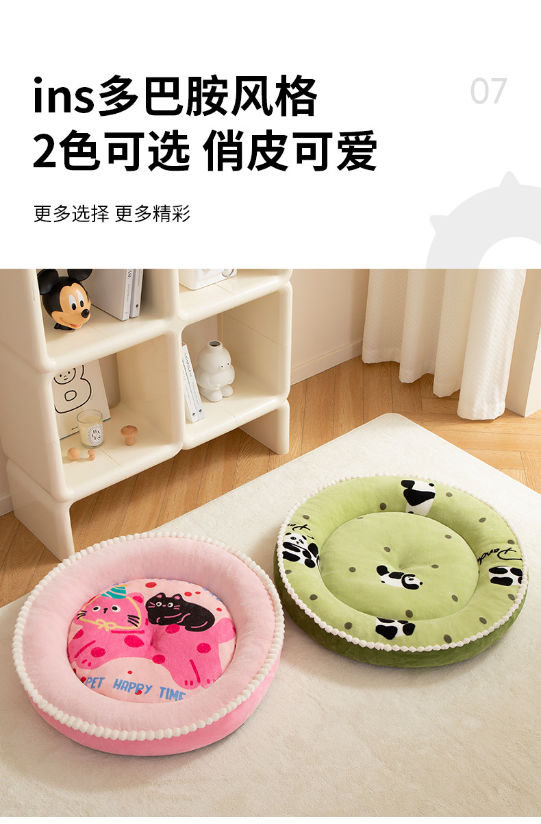 Kennel Four Seasons 유니버설 두꺼운 따뜻한 매트 미디어와 작은 개 Corgi Chai Dog 라운드 만화 개 침대 고양이 둥지 매트스토어 가기