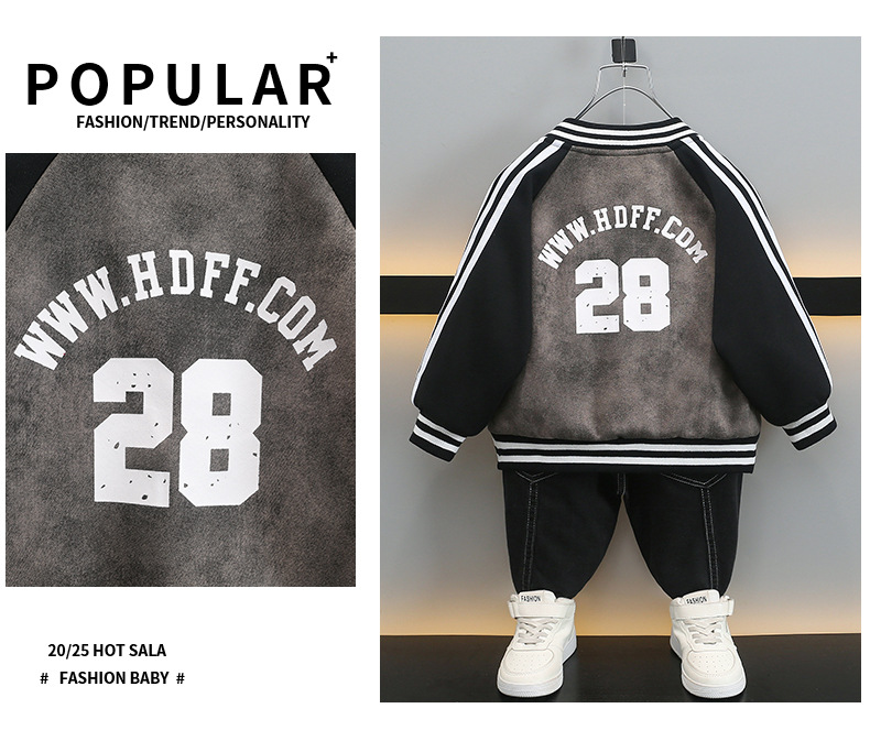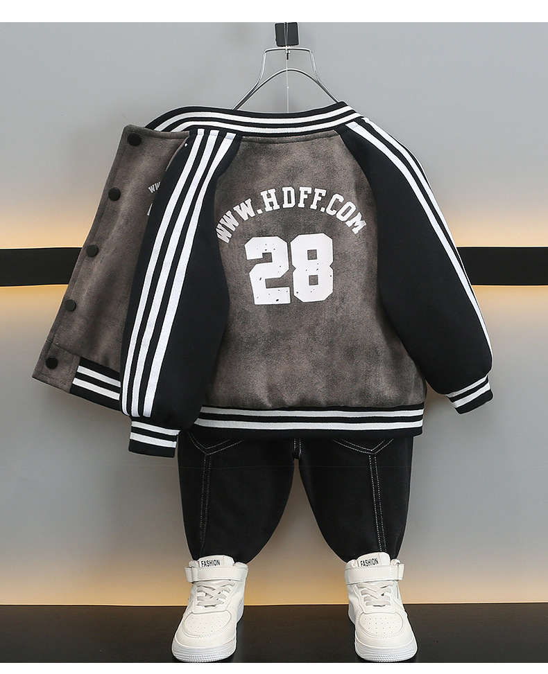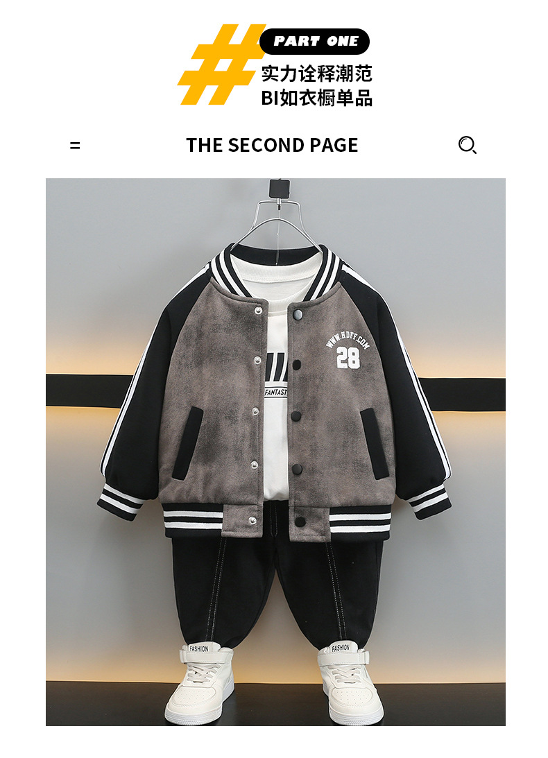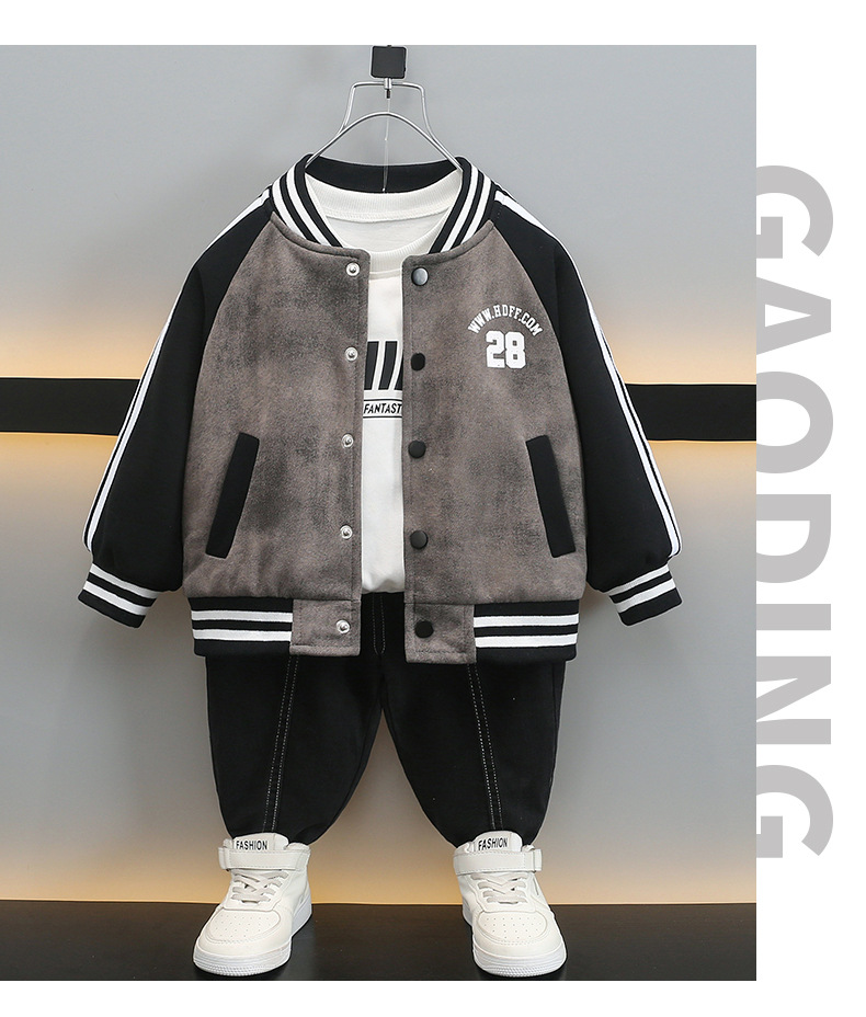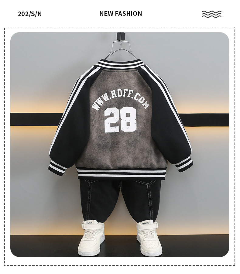 소년 야구 세트 코트 2025 년 봄과 가을 새로운 스타일 어린이 가을 재킷 소년의 가을 크루 넥 탑