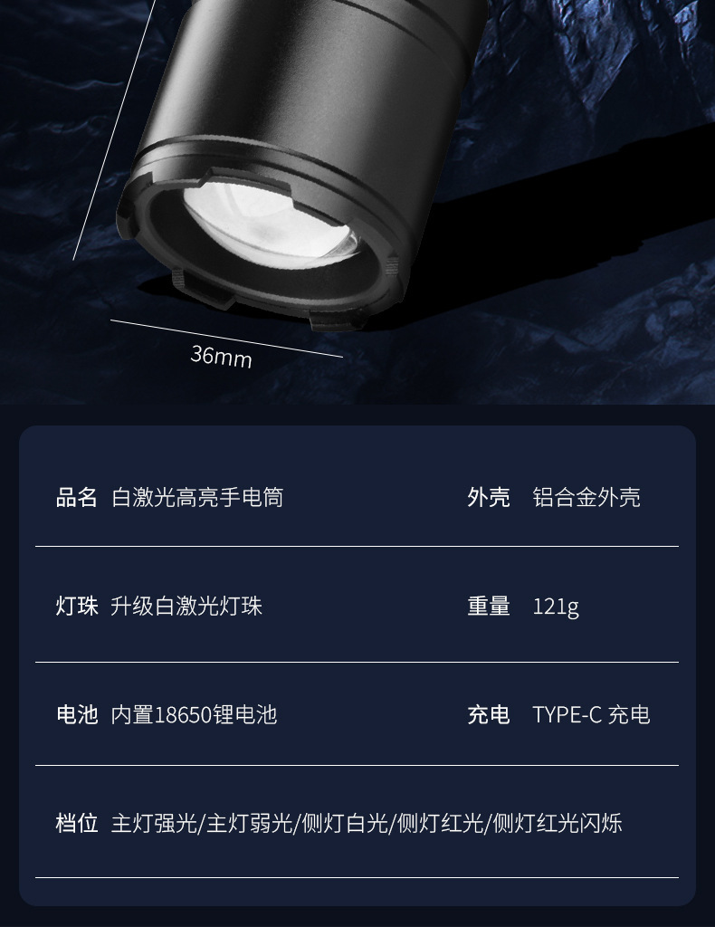 새로운 하이킹용 강력한 손전등, 충전식, 휴대용, 가정용, 야외용, 장거리, 초강력 백색 레이저 광학 줌스토어 가기