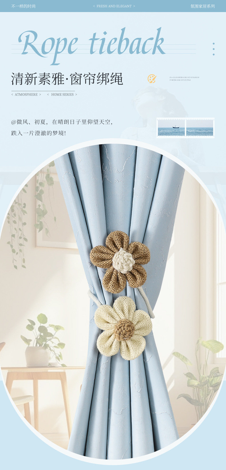 국경 간 간단한 커튼 스트랩 펀치없는 해바라기 커튼 버클 접이식 곡선 장식 스트랩스토어 가기