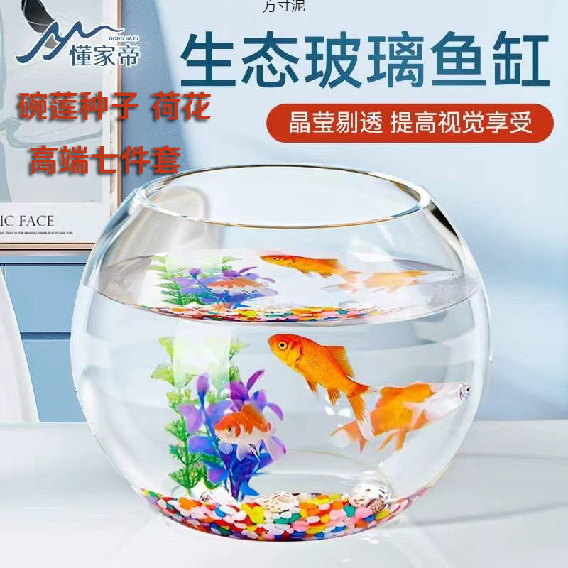유리 구형 어항 라운드 수경 투명 거실 중간 사무실 데스크탑 작은 금붕어 미니 어항스토어 가기