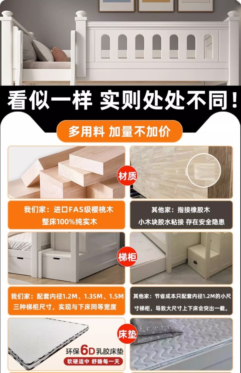• 사다리 캐비닛 모델에는 상하 매트리스 + 더블 서랍이 함께 제공됩니다.