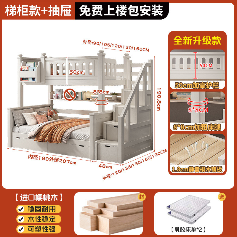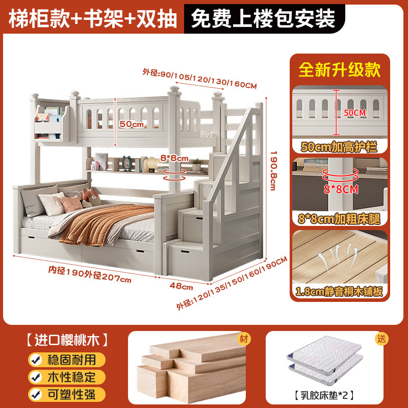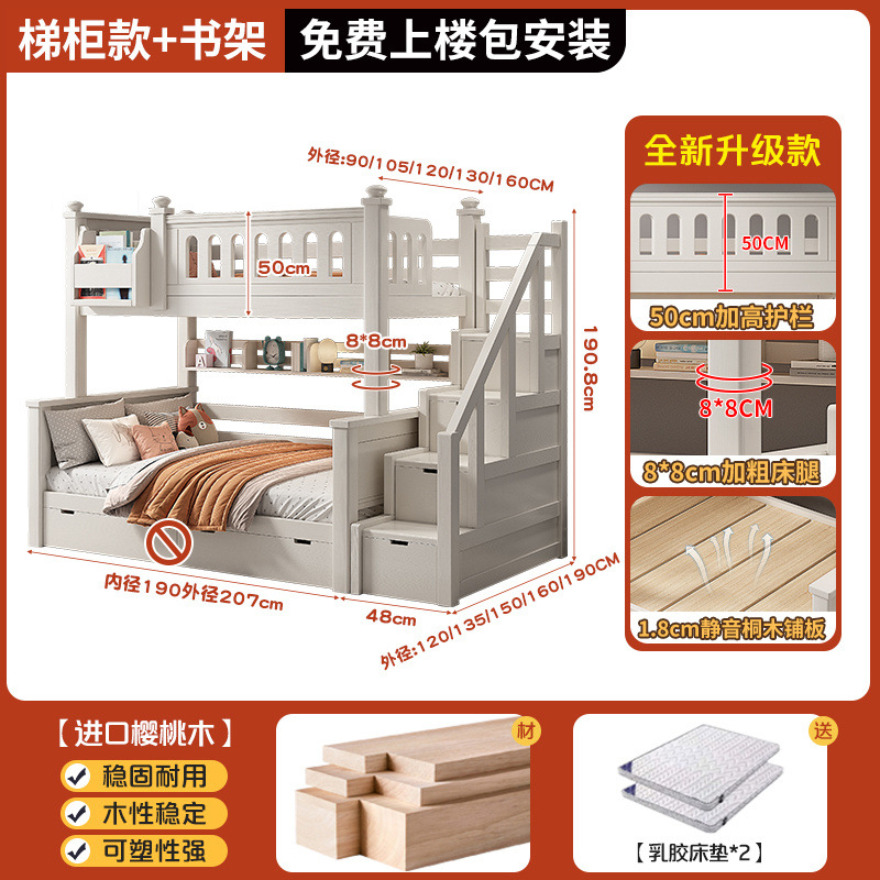 벙크 침대 풀 솔리드 우드 어린이 침대 높고 낮은 침대 체리 우드 두꺼운 엄마와 아이 침대 엄마와 아이 2 층 이층 침대 침대