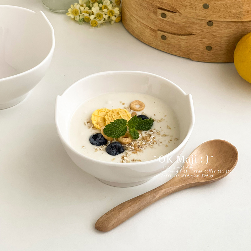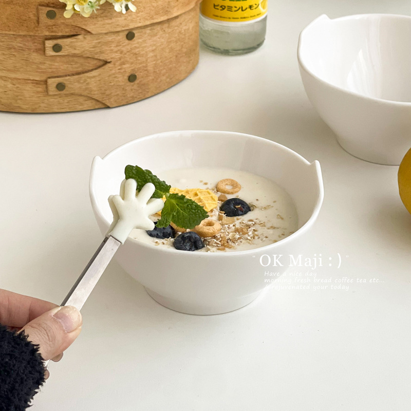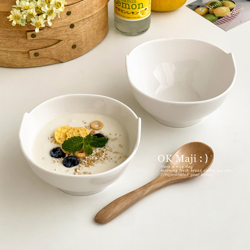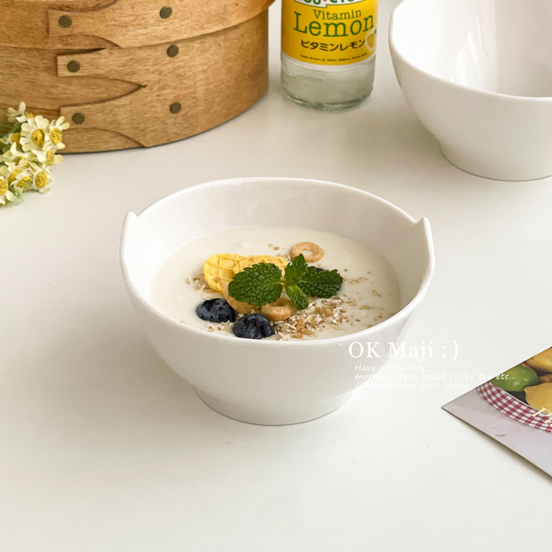 요구르트 그릇 높은 아름다움 가치 가정용 세라믹 더블 귀 그릇 스타일 절묘한 아침 식사 오트밀 그릇 개인 특별 오트밀 그릇스토어 가기