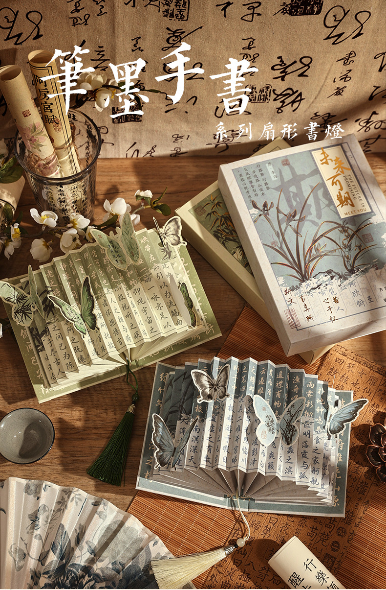 -Guofeng 팬 모양의 수제 책 램프 펜과 잉크 핸드북 DIY 창조적 인 골동품 책 램프 나비 밤 조명 도매 선물스토어 가기