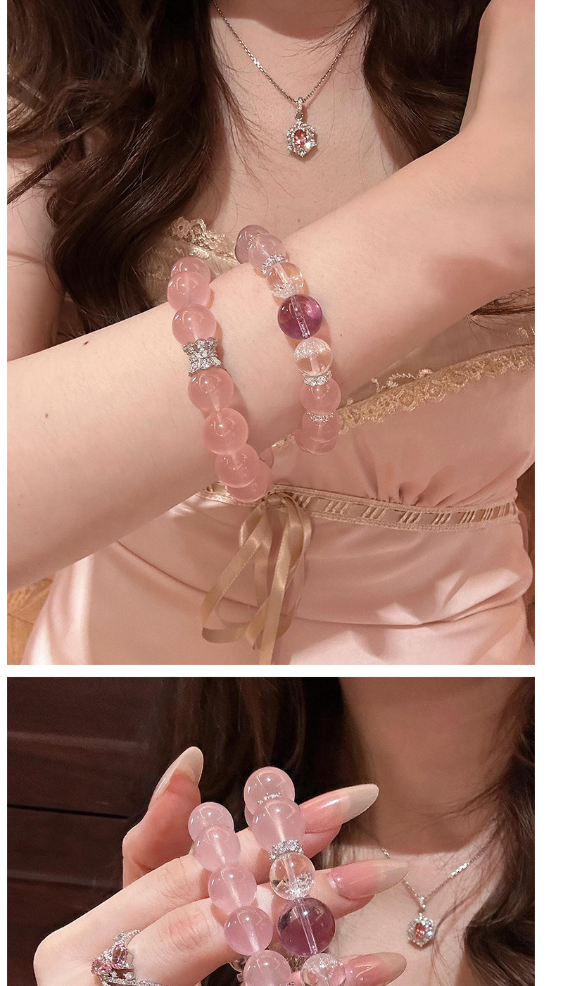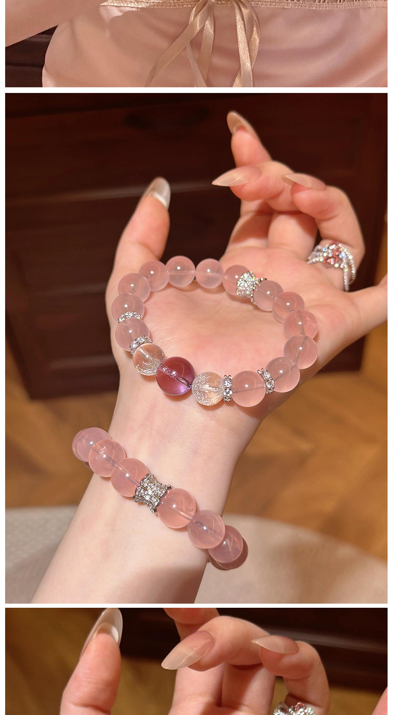 마다가스카르 얼음 핑크 팔찌 복숭아 꽃 핑크 크리스탈 팔찌 자수정 전송 구슬스토어 가기