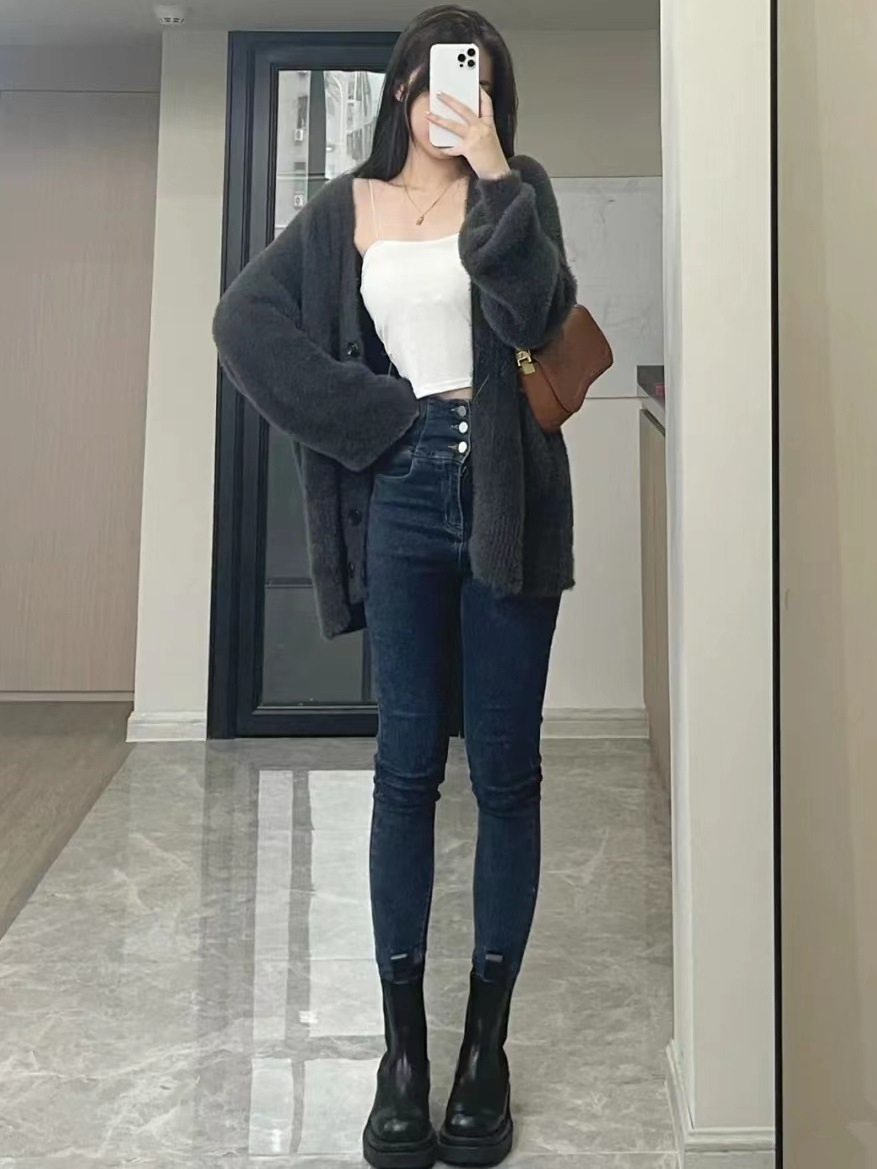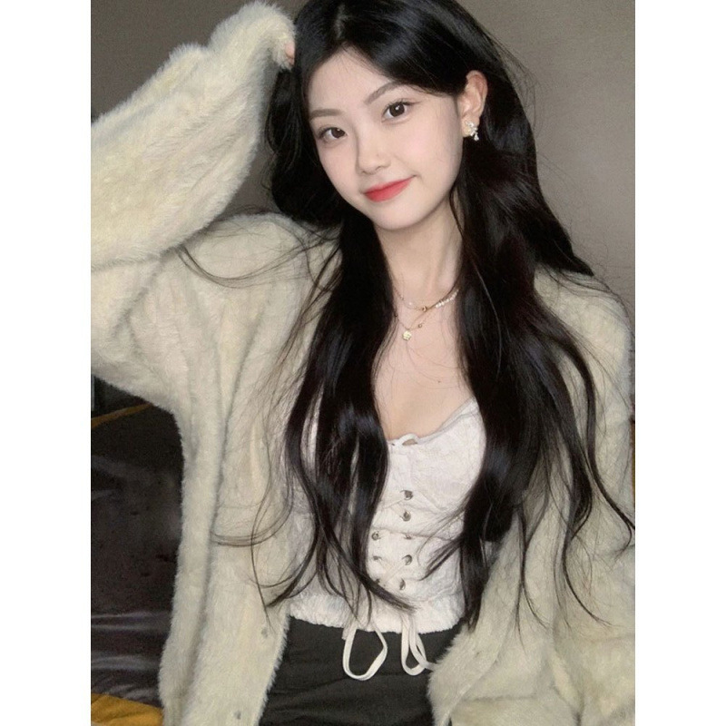 부드러운 왁스 스웨터 코트 여성의 봄과 가을 게으른 스타일 하이 엔드 센스 작은 느슨한 슬리밍 모방 밍크 벨벳 니트 카디건스토어 가기
