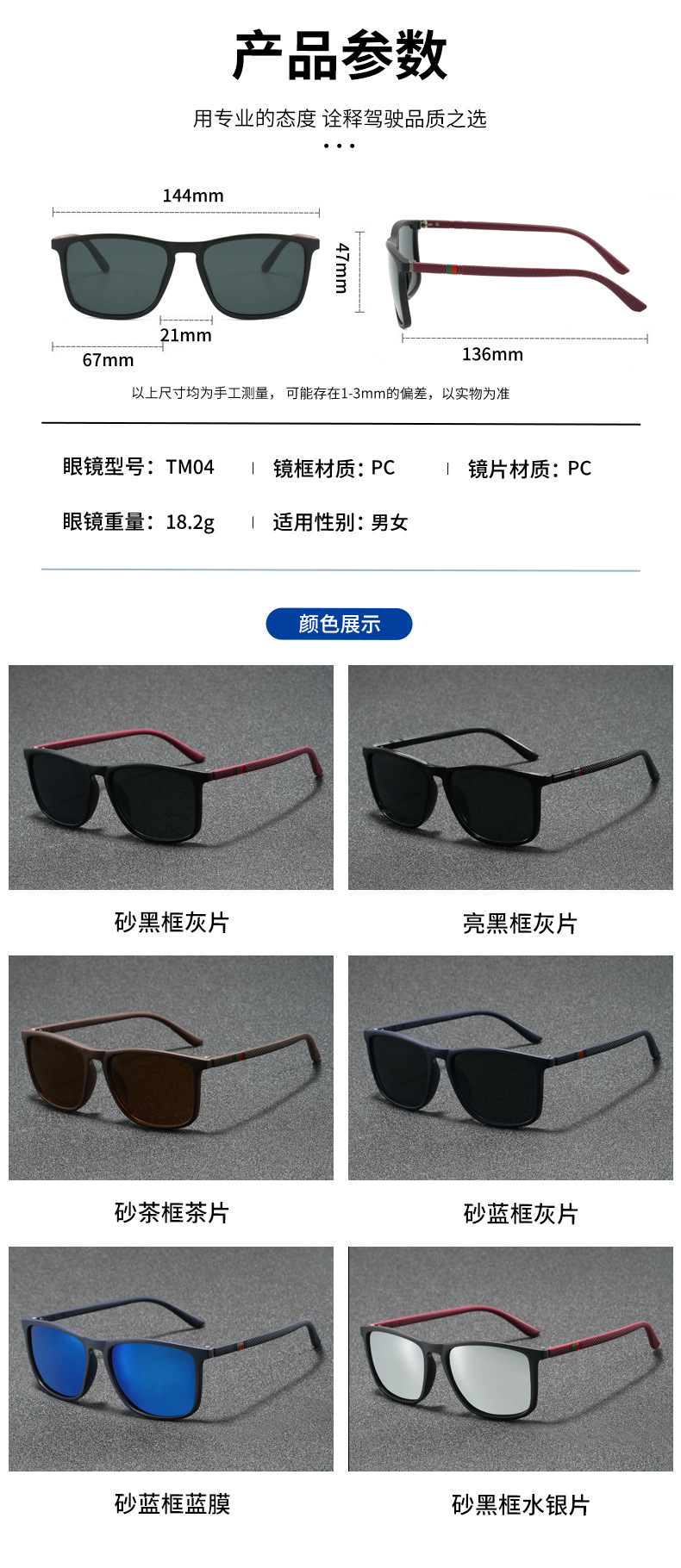 신형 남녀 공용 사각형 대형 프레임 클래식 패션 선글라스 운전용 안경 낚시용 안경 -- 재고 충분스토어 가기