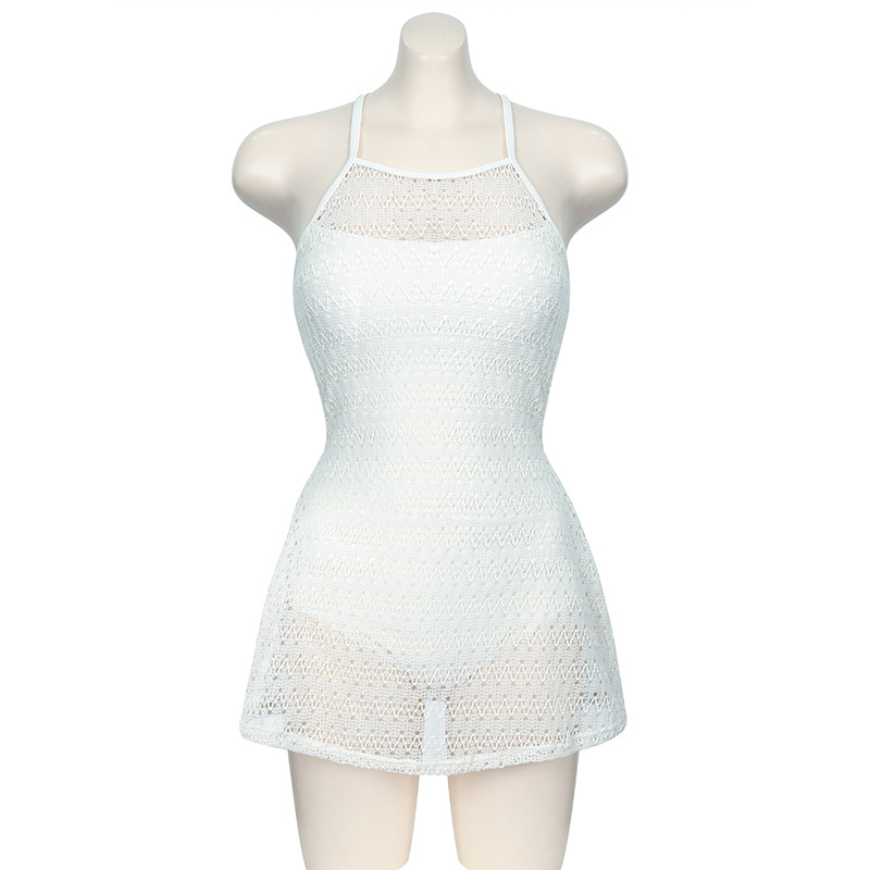 여성용 한국 원피스 수영복 새로운 인 스타일 섹시한 백리스 순수 니트 배꼽 커버 보수적 인 스커트 수영복 2025스토어 가기