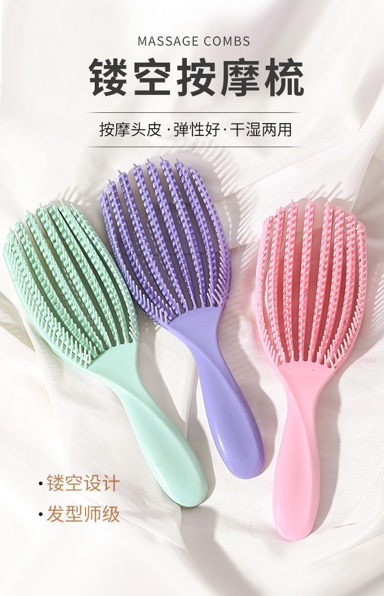쉘 빗 빛나는 빈 푹신한 스타일 빗 정전기 방지 헤어 마사지 두피 Spareribs 에어 쿠션 빗