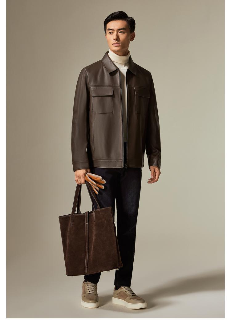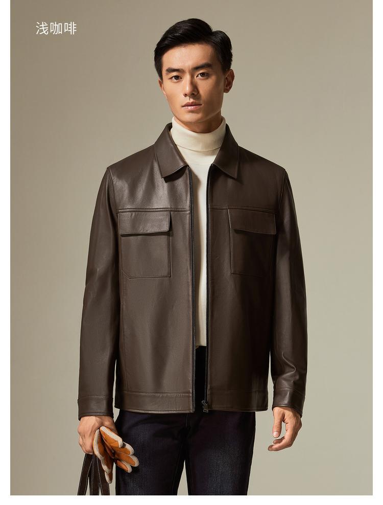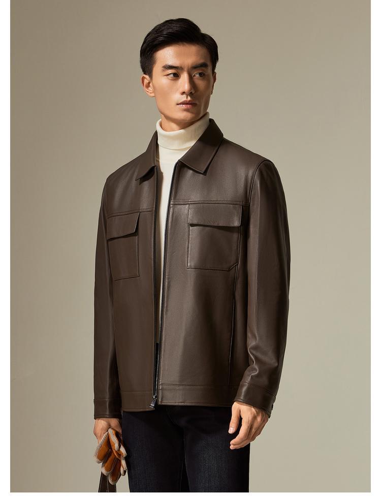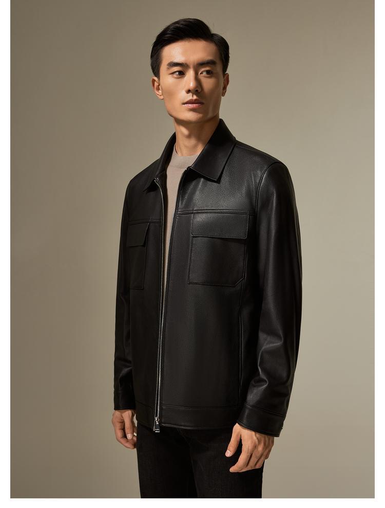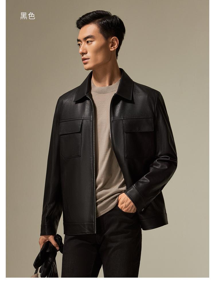 [레이준 기자 간담회] 가죽 남성 비즈니스 가죽 자켓 하이 엔드 옷깃 재킷 2025 봄뉴