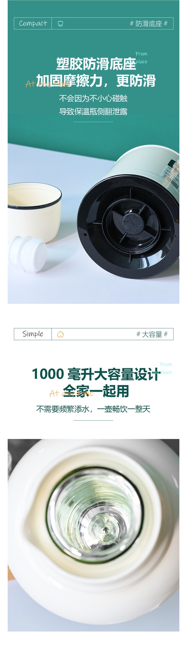 푸청 열 냄비 가정용 1000ML 대용량 휴대용 열 절연 가구 F 화이트 오렌지 녹색 유리