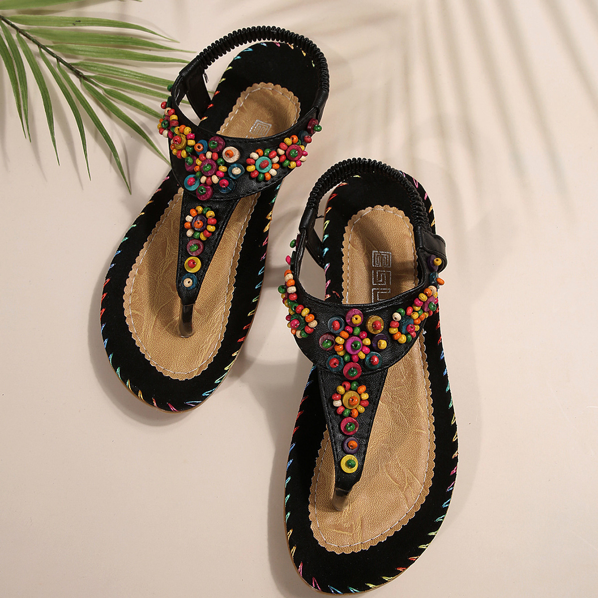 샌들 여성 여름 새로운 여성 신발 여름 보헤미안 클립 플랫 샌들 여성 구슬 비치 신발 여성 도매스토어 가기