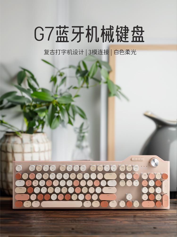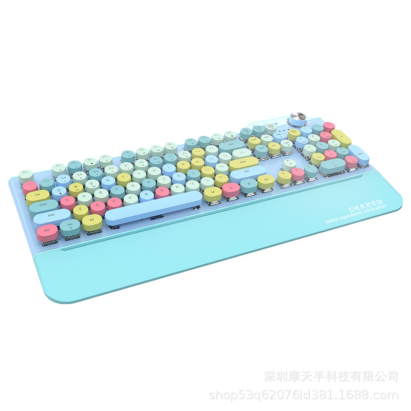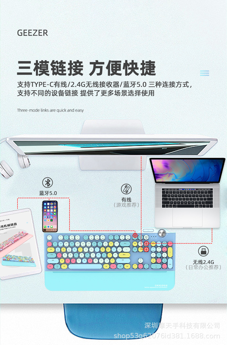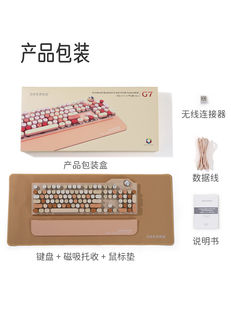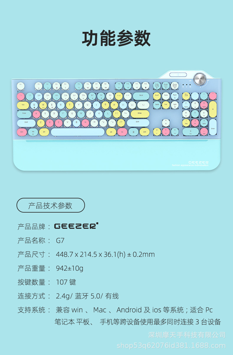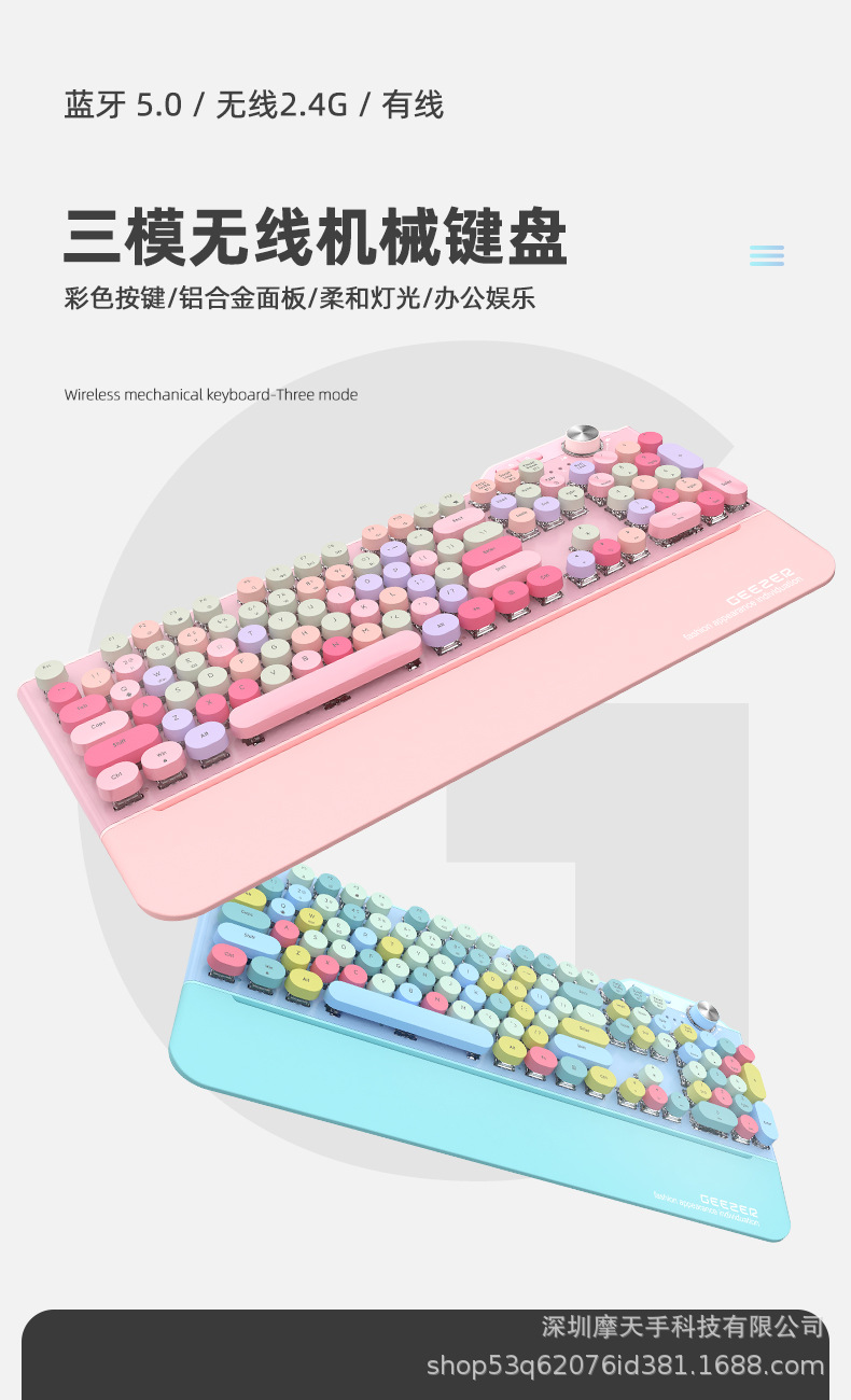 GEEZER G7 3 모드 기계식 키보드 유선 무선 블루투스 충전 3 모드 기계식 키보드 녹색 축 원형 키보드스토어 가기