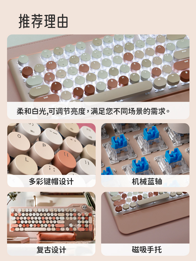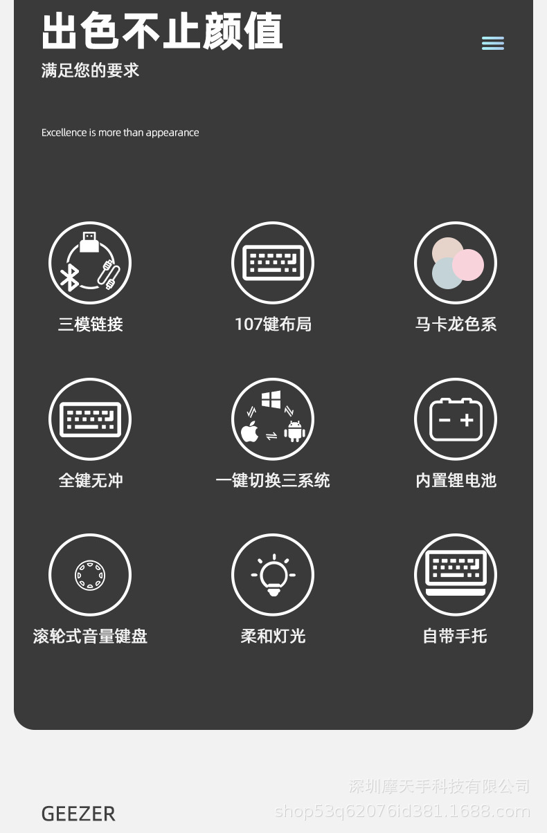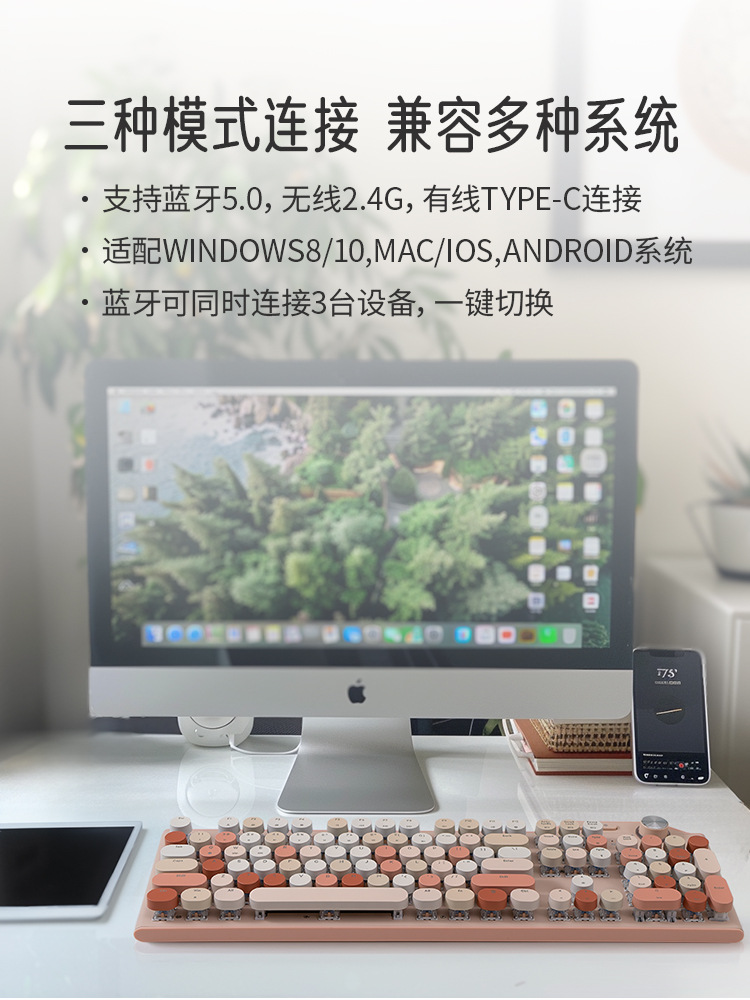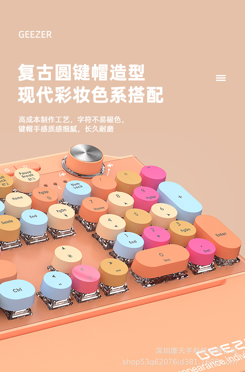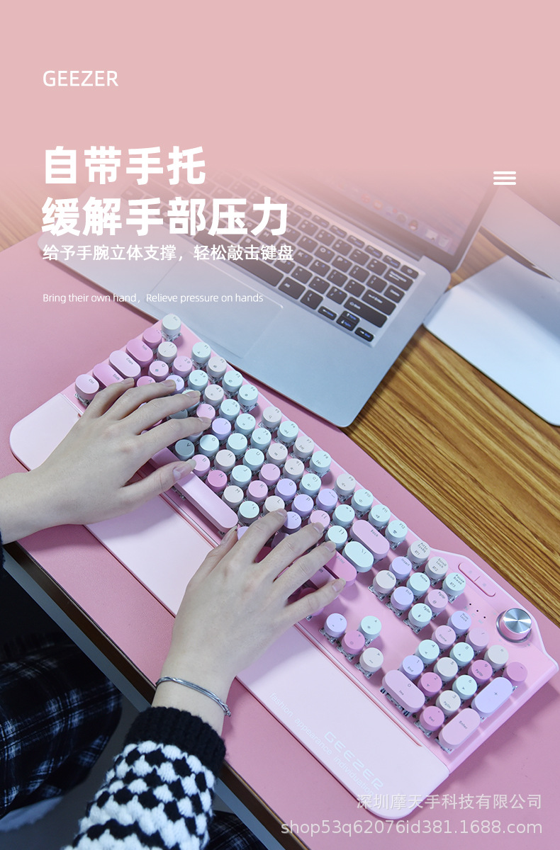 GEEZER G7 3 모드 기계식 키보드 유선 무선 블루투스 충전 3 모드 기계식 키보드 녹색 축 원형 키보드스토어 가기
