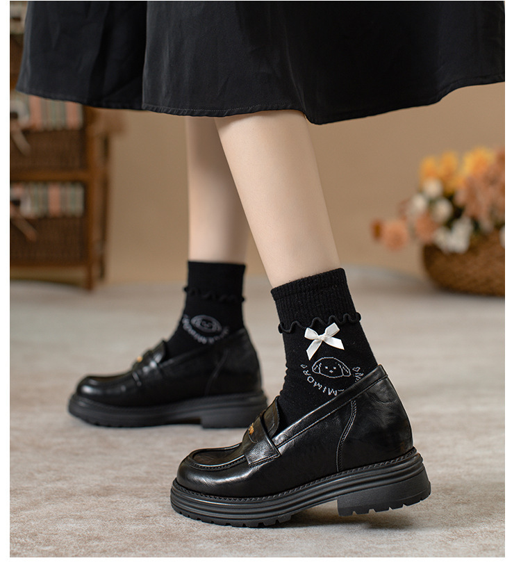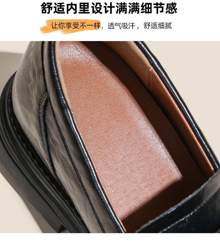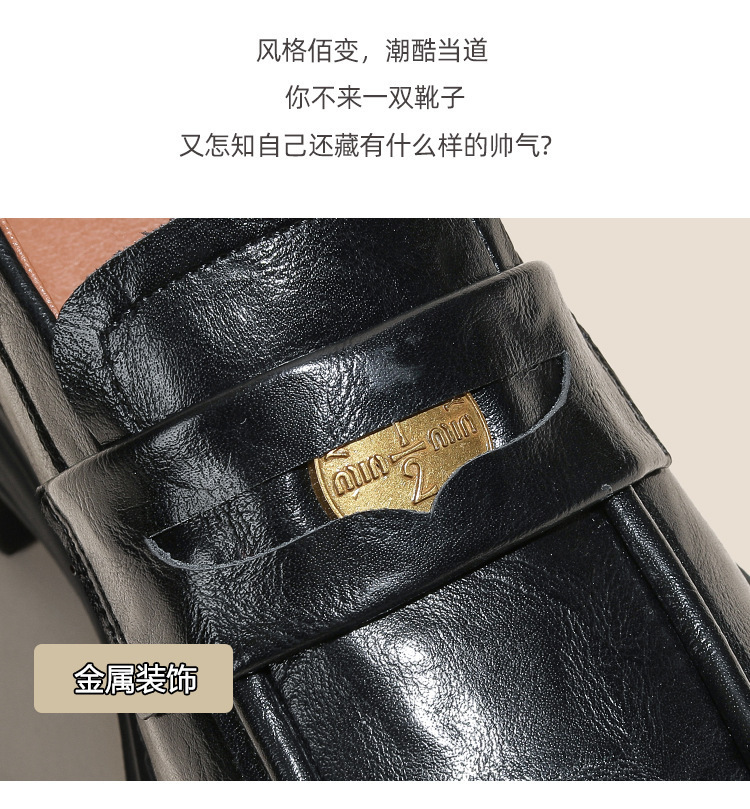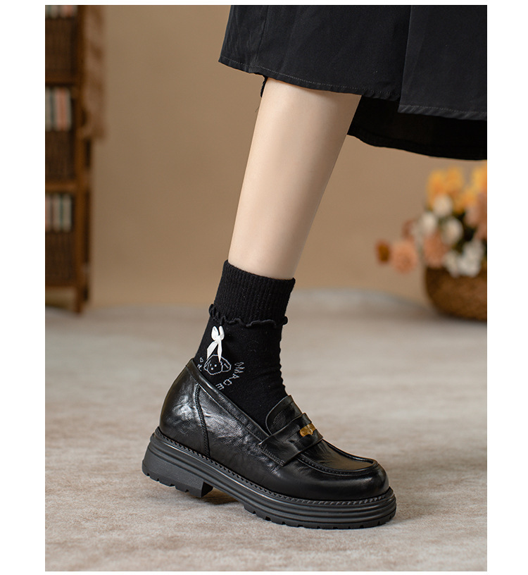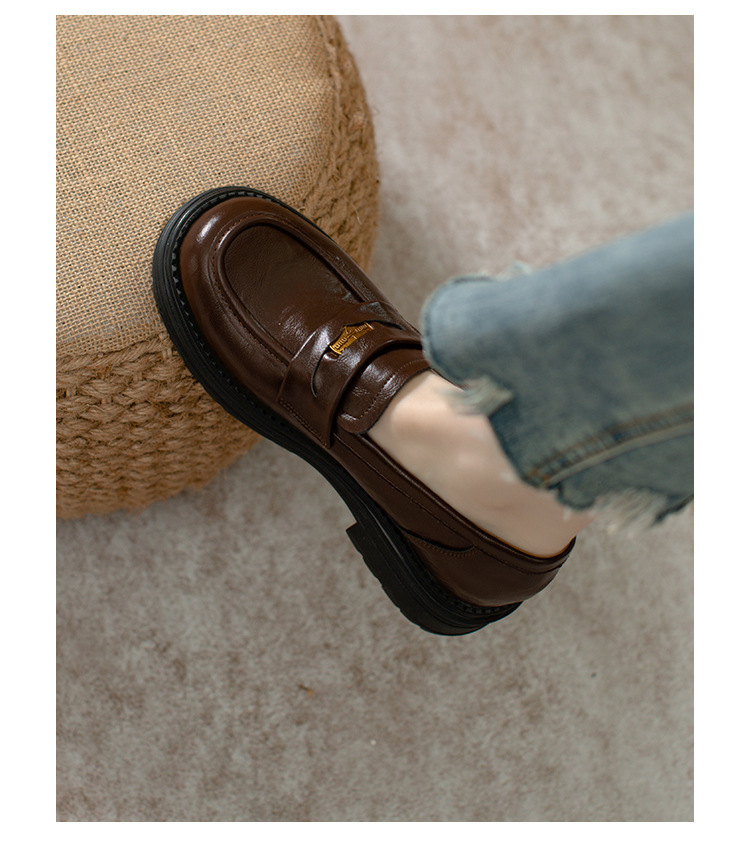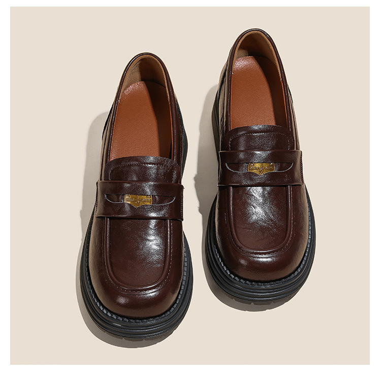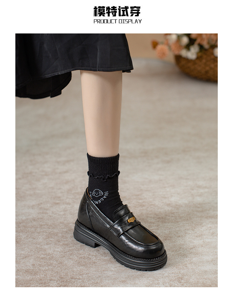 영국 스타일 슬립 온 골드 코인 로퍼 여성 올 매치 두꺼운 밑바닥 라운드 머리 내부 높이 올리는 작은 가죽 신발