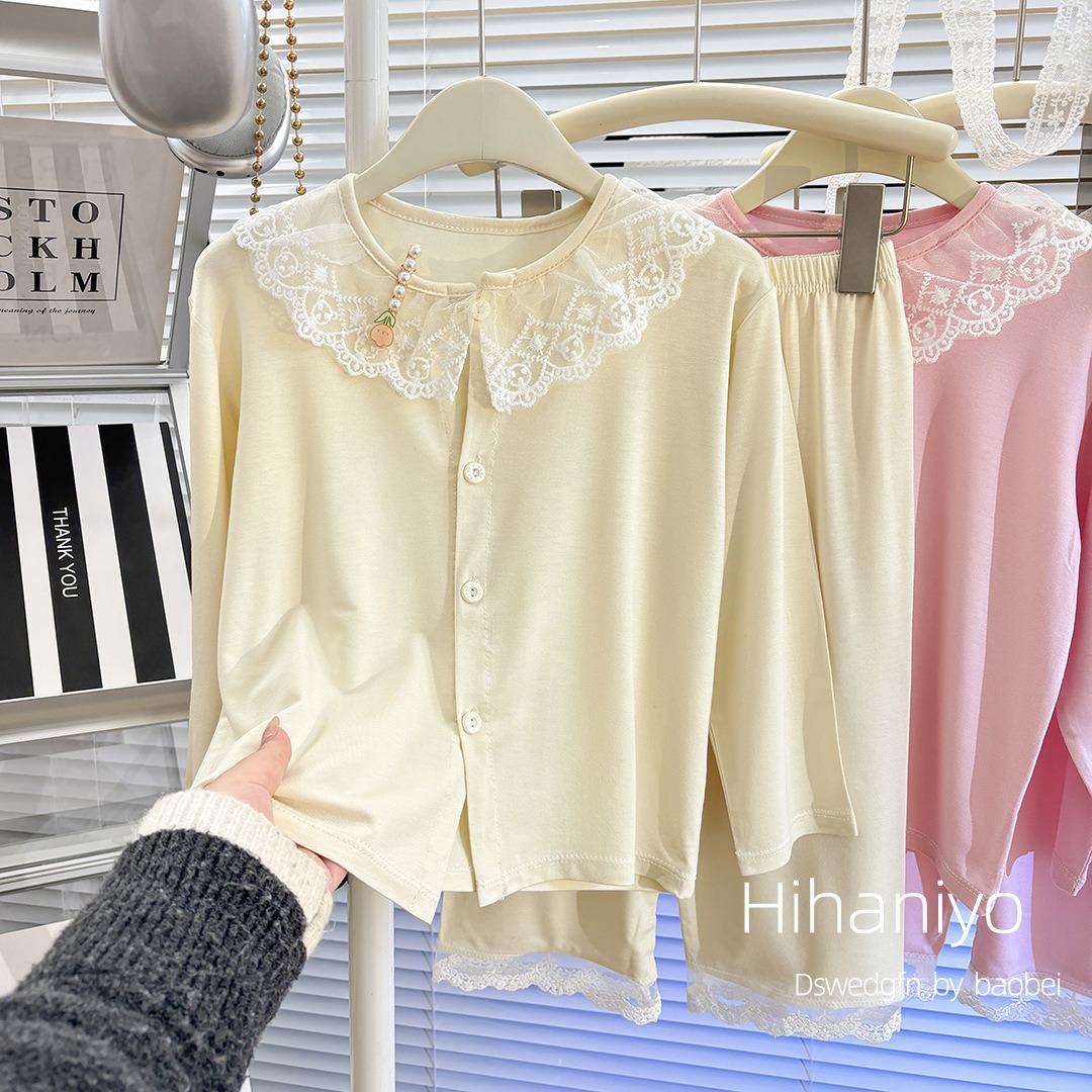 어린이 모달 파자마 소녀 카디건 긴팔 부모-자식 에어컨 의류 큰 어린이 여름 얇은 홈 의류 세트