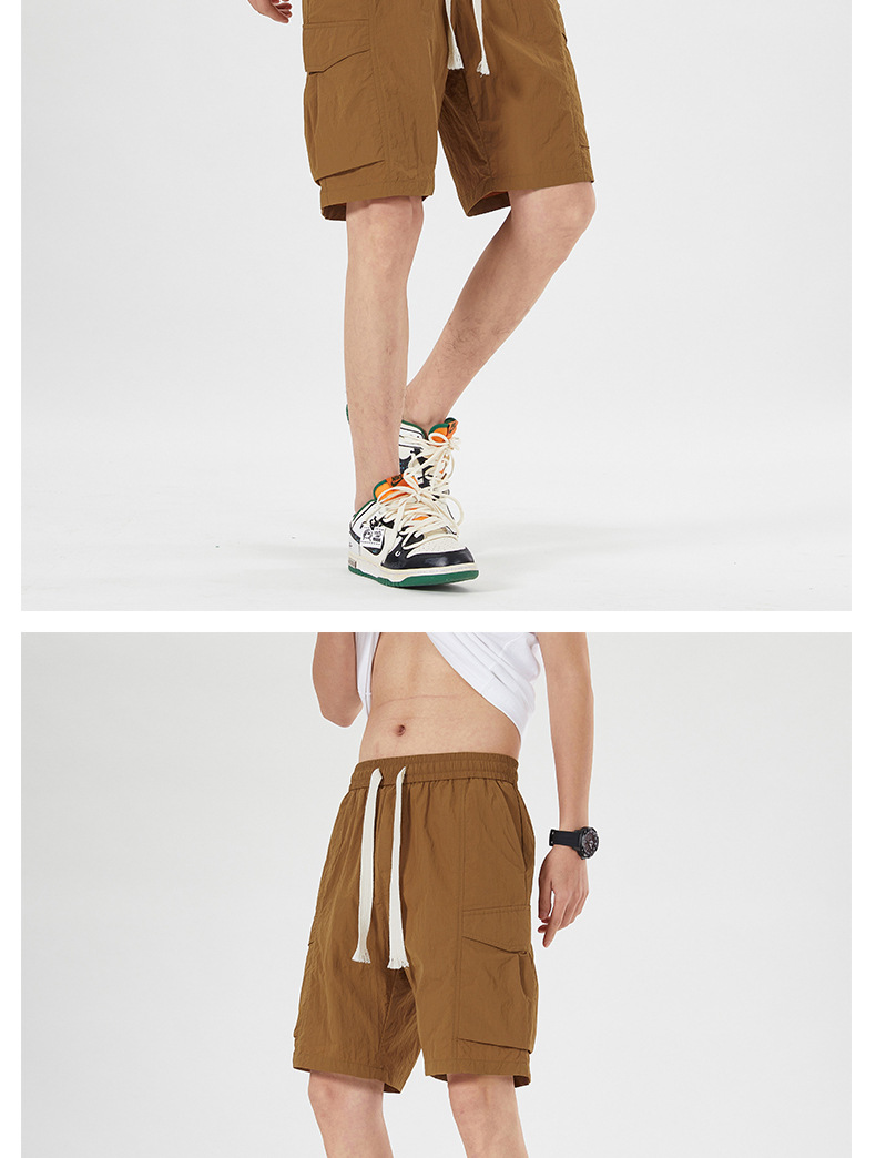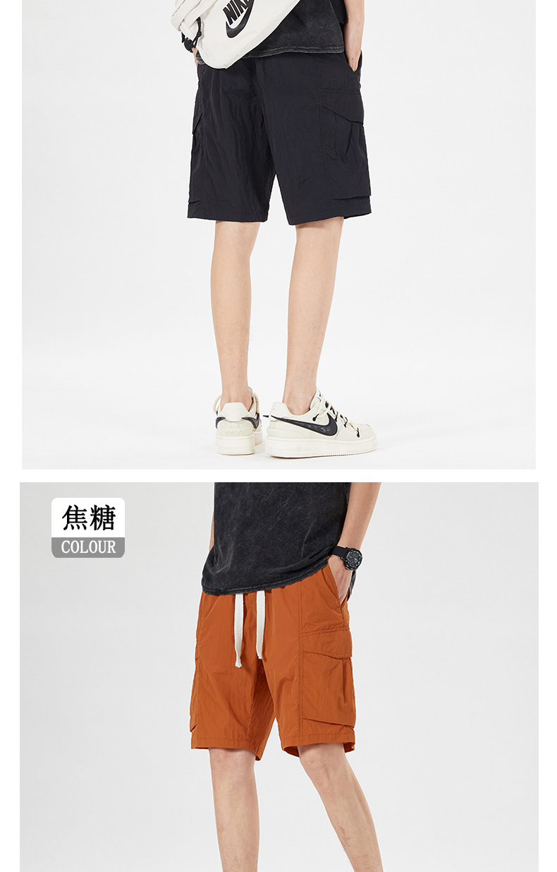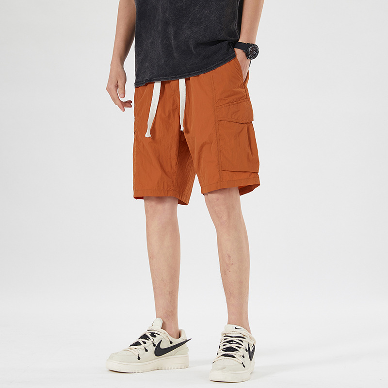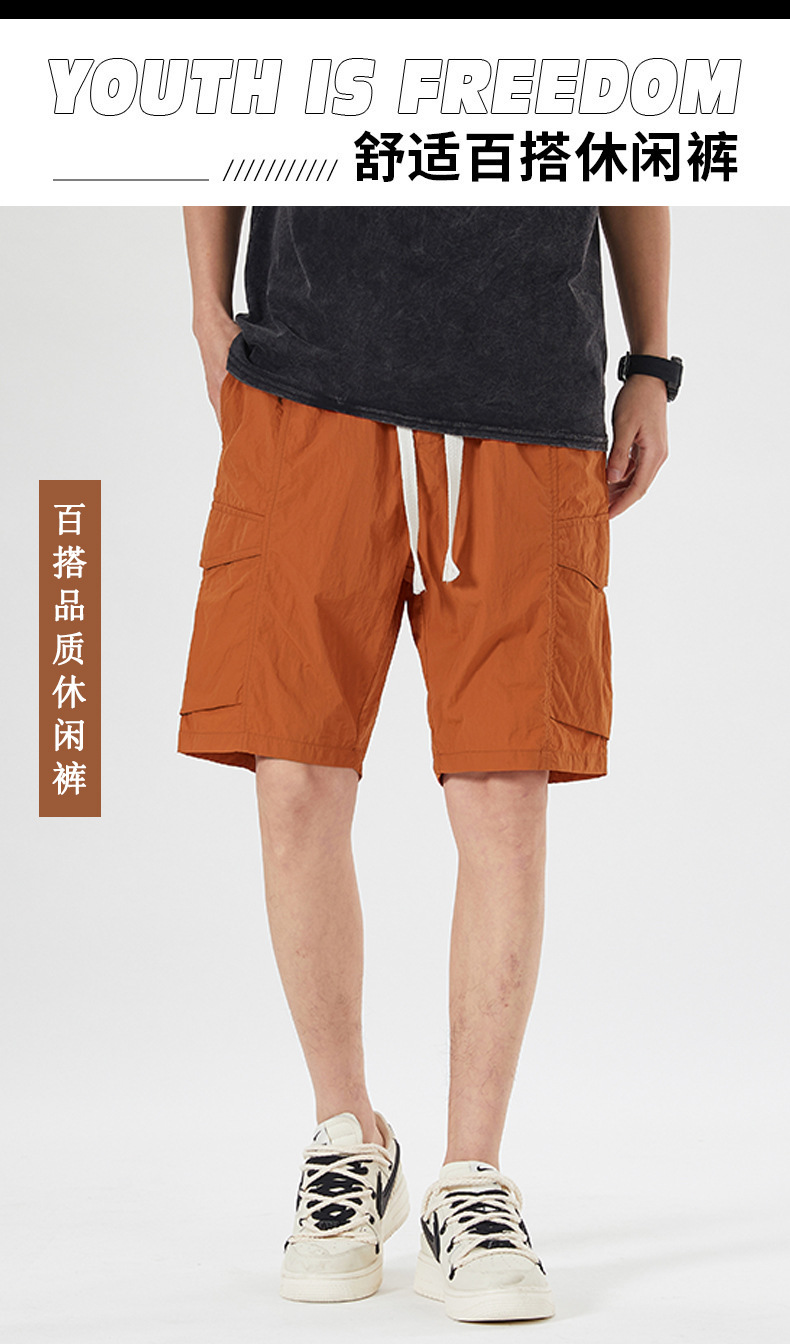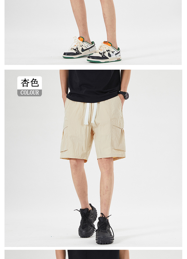 남성용 아이스 실크 얇은 빠른 건조 한국 스타일 남성용 패셔너블 루즈 아메리칸 스타일 툴링 바지 캐주얼 스트레이트 바지