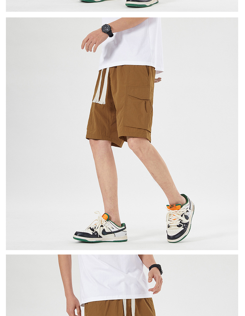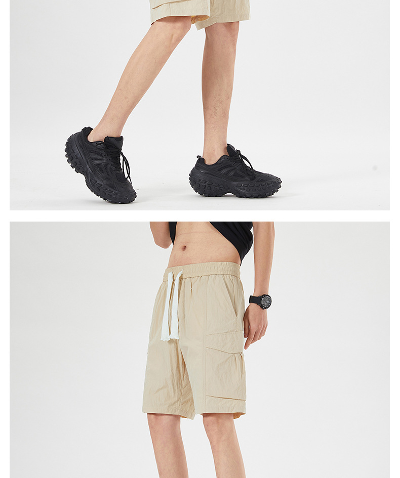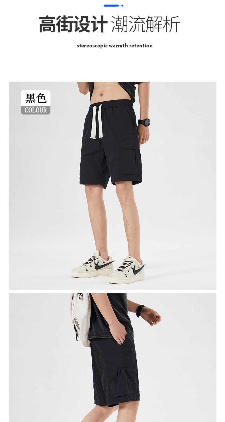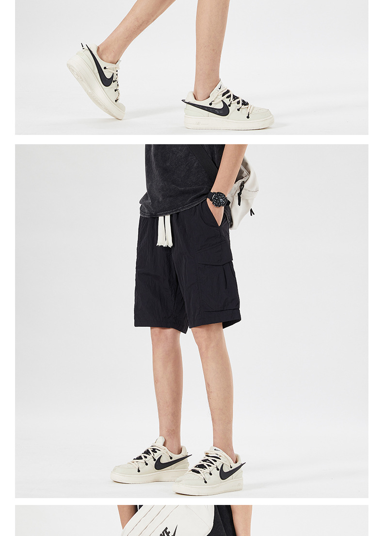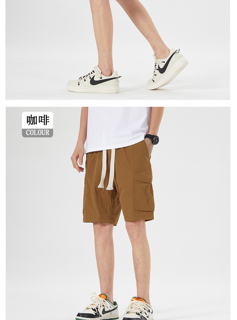 남성용 아이스 실크 얇은 빠른 건조 한국 스타일 남성용 패셔너블 루즈 아메리칸 스타일 툴링 바지 캐주얼 스트레이트 바지