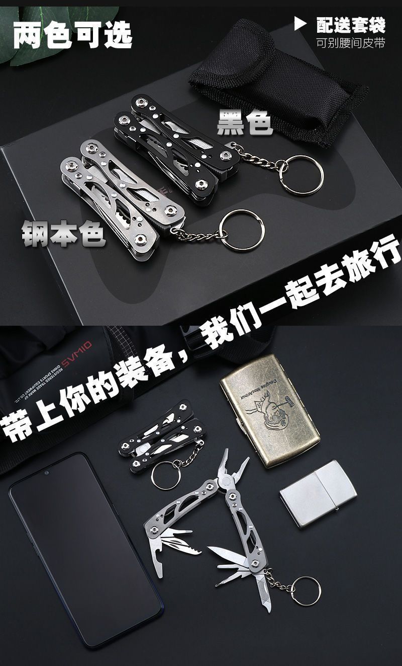 다기능 도구 펜치 호랑이 펜치 와이어 커터 야외 미니 드라이버 나이프는 병따개 열쇠 고리를 보았다