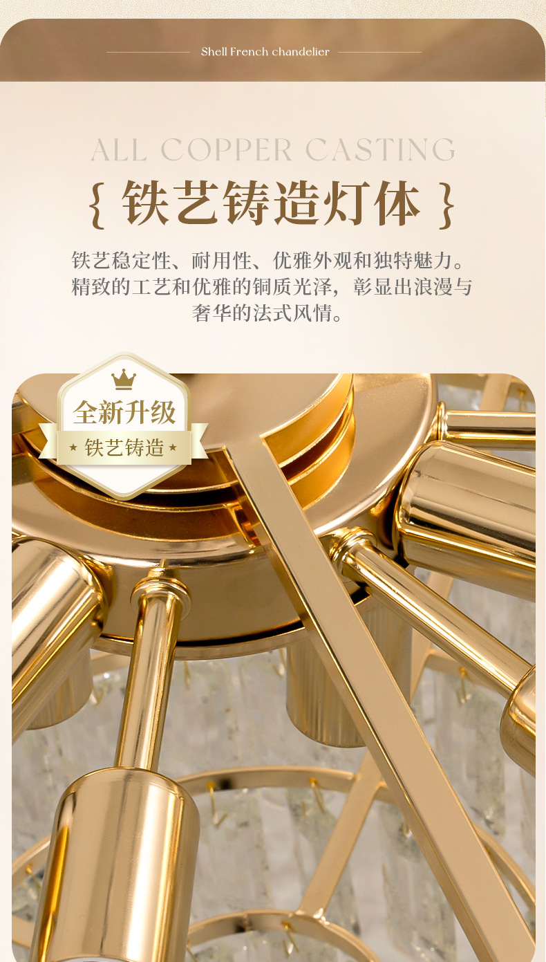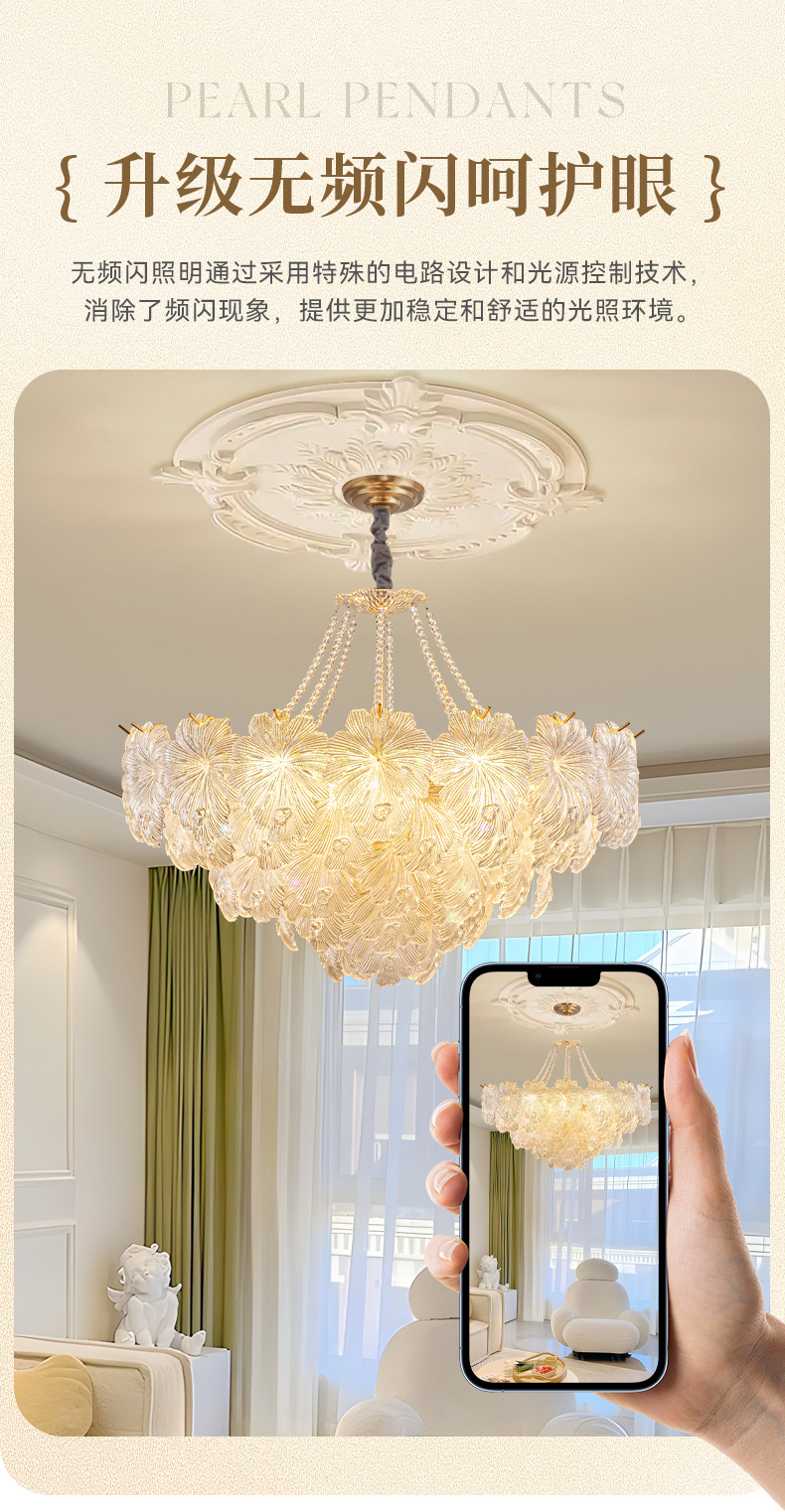 프랑스 스타일 샹들리에 거실 램프 빛 고급 크리스탈 유리 다이닝 룸 램프 고급 센스 크림 윈드 홀 샹들리에 눈 보호 램프스토어 가기