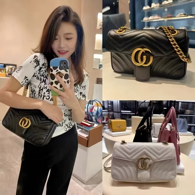국경 간 트렌디 한 더블 G 마문 정품 가죽 러브 체인 여성 가방 싱글 숄더 크로스 바디 백 커버 스타일 여성 올 매치 캐주얼 가방스토어 가기