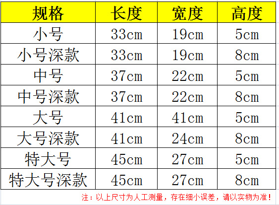 产品标明具体尺寸,因测量方式不同,生产批次不同,难免存在尺寸及重量上的偏差,测量上的误差,因产品规格型号不同,误差范围无法一一明细,需要较详细的参数资料时请联系工作人员进行确认!